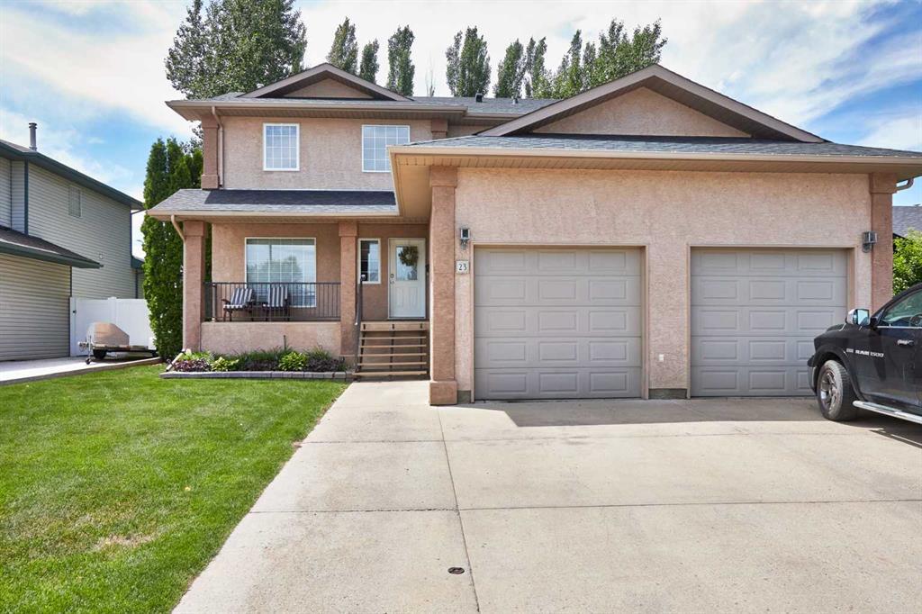 This fully developed 2-storey home with 5 bedrooms, office plus den is located near schools, churches, Saamis Rotary Park/water park and Medicine Hat’s extensive trail system. With stucco exterior and a front covered deck, this home has great curb appeal. Inside you’ll find a spacious living room with high ceilings open all the way to the upper level and a gas fireplace. The bright kitchen has been refreshed with white cabinets and quartz counter tops, newer fridge and dishwasher, also with a corner pantry & built-in microwave. The main level also has an office/den, laundry room and 2-piece bathroom. Upstairs is host to 3 bedrooms including the primary bedroom with walk-in closet and 3-piece ensuite. There are 2 more bedrooms in the basement as well as a family room and a den. The 4-piece bathroom in the basement has a jetted tub and an electric fireplace to keep the bathroom nice and warm in the winter. You’ll also be able to relax in the hot tub (air jets and water jets) which has recently been serviced at a cost of $3600 including a new cover and lift. Plenty of mature trees line the back yard offering privacy and shade while in the hot tub or enjoying time on the covered deck or concrete patio. The double attached garage 24x24’ is finished and heated with 12’ high ceilings. Some of the recent updating completed includes vinyl flooring throughout most of the main level, paint, 3 new toilets, bathroom vanity doors, shingles (2020), high efficiency furnace, hot water tank and more. All appliances are included as well as central vacuum and underground sprinklers. This is a terrific family home!