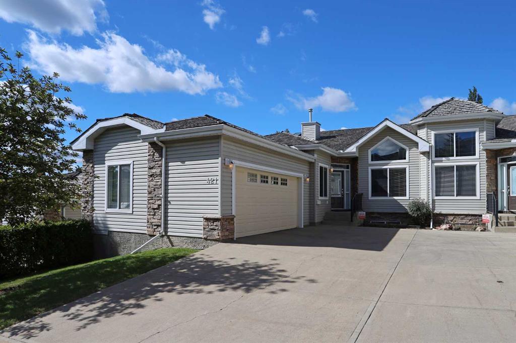 Not-to-miss opportunity here for you in this lovingly maintained villa in the ROCKY RIDGE MOUNTAINVIEW VILLAS project...this collection of just 18 beautiful bungalows in the highly-desirable community of Rocky Ridge. This mint condition 3 bedroom home enjoys extensive hardwood floors & soaring vaulted ceilings, fantastic kitchen with granite countertops, 2 fireplaces & private backyard with towering mature trees & wonderful views of the mountains. Embrace the amazing open concept flow of the air-conditioned main floor, with its gracious living room with gas fireplace & bay window, elegant formal dining room with columns, dining nook with access onto the backyard balcony & kitchen with walk-in pantry & island with raised bar, skylight & stainless steel appliances including KitchenAid gas cooktop & built-in convection oven. The owners' retreat is a relaxing space & has vaulted ceilings, walk-in closet & soaker tub ensuite with oversized shower, skylight & granite-topped double vanities. The 2nd main floor bedroom - which also makes a great home office, is conveniently located by the 2nd full bath - which has a walk-in shower. The walkout level is finished with a 3rd bedroom & full bath, games/rec room with fireplace & media room with built-in bar, projector & projection screen. Main floor laundry with built-in cabinets & Whirlpool Duet washer & dryer. Additional extras & improvements include new exterior Gemstone lights (2023, with 5 year transferrable warranty), new hot water tank (2024), sprinkler system, oversized 2 car garage, Hunter Douglas blinds, balcony with Duradeck (2023) & gas BBQ line, new regulator on main floor furnace (2024), heat exchanger & new hot water booster (2024, with 5 year warranty) so you'll always have lots of hot water. For a low monthly fee (currently $25), residents also have access to the Lakes of Rocky Ridge recreational facility...The Lake Club...with its games room, theatre, fitness centre & activity room. A truly sensational home in this exclusive villa community, walking distance to stormwater ponds & outdoor sports courts, LRT, area shopping & just minutes to the Shane Homes YMCA, Crowfoot Centre & more!