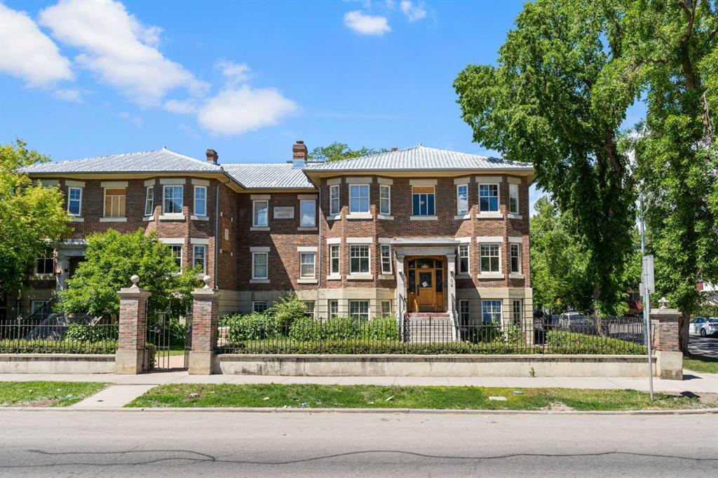 Nestled in the heart of the city, this exquisite property of Glenwood Manor is a designated historical building, constructed in 1928. The stunning stone and brick facade, complemented by wrought iron gate and a charming courtyard sets the stage for an extraordinary living experience. Perched on the top floor, this homeowner has breathtaking views of the Peace Bridge, Bow River, and the downtown skyline. The floorplan is a tribute to its era, featuring a sun-drenched, south-facing living room with elegant bow windows that fill the space with natural light. The fantastic formal dining room, adorned with French doors, is the perfect place for entertaining. The bathroom retains its original charm with classic tile flooring and a clawfoot tub, while the gallery kitchen, with access to the back landing entrance, blends vintage appeal with modern convenience. Funds through government investment due to the historical designation helps to ensure the preservation of the property’s unique character and integrity. Practical amenities include a large storage locker, dedicated bike storage and common laundry which enhance the functionality of this historic gem. The walkability score is unparalleled, with seamless access to Sunnyside C Train station, the Kensington district, the river pathway, and the greater downtown area. Parking is hassle-free with ample permitted street parking, and there is opportunity to lease one of the assigned parking stalls. Embrace the charm and elegance of a bygone era at Glenwood Manor.