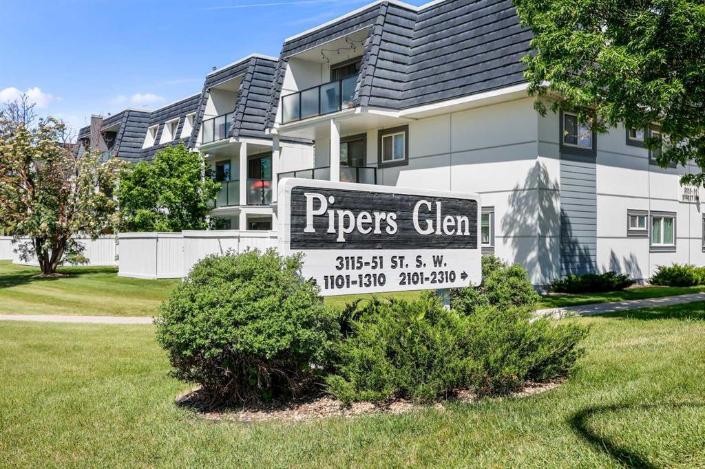 South-facing, RENOVATED 2 bedroom condo is a must see. The kitchen has been tastefully updated with contemporary WHITE CABINETRY featuring elegant glass displays enhanced by under-cabinet LIGHTING that illuminates the stunning MARBLE BACKSPLASH. The LIVE EDGE CEDAR COUNTERTOP adds a touch of rustic charm. Sleek STAINLESS STEEL appliances includes an upgraded Refrigerator and a Double OVEN STOVE is a cook’s dream! The space is completed with stylish CERAMIC TILE FLOORING, creating a perfect blend of modern functionality and timeless design. The living and dining rooms, as well as the bedrooms, feature beautiful ENGINEERED HARDWOOD. The spacious, bright living room that fills with natural light, creating a warm and inviting atmosphere perfect for relaxing or entertaining. The bathroom also boasts a CERAMIC TILE FLOORING and a modern bathtub designed for ultimate relaxation. With contemporary finishes, and a ceiling-high TILE surround, this space offers an enhanced bathing experience. Discover a primary bedroom that offers both comfort and convenience, featuring a closet with built-in shelving for effortless organization. The second bedroom is ideal for guests or a roommate, providing a versatile space to suit your needs. For those that work from home, the storage room can be converted into a small office. Also additional storage locker and bike storage. The unit comes with an assigned parking spot, alongside ample visitor and off-street parking. Pipers Glen went through an EXTERIOR refresh with HARDIE BOARD. Glass balconies enhance the exterior experience, bringing in abundant natural light. Check out the picnic area. Pipers Glen boasts a prime location near fantastic shopping and dining options. Enjoy the convenience of nearby Richmond Square, London Place West, Co-op Plaza, and the Westhills/Signal Hill shops, all just moments away. Quick access to Stoney Trail and the Rockies.