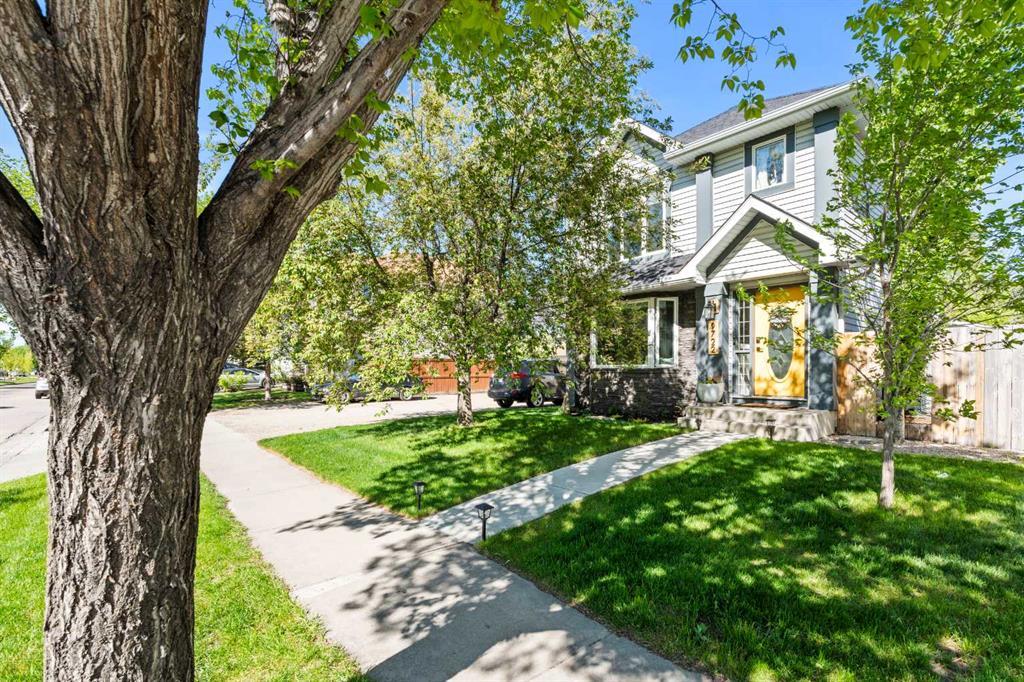 A Rare Find … As you approach this updated home, you will notice the mature trees providing an extensive amount of privacy and great curb appeal. The spacious front living room has a welcoming bay window with built-in seating creating a quiet sanctuary. Adjacent is the “U-shaped” kitchen with solid oak cabinets, upgraded stainless steel appliances, durable flush counters, a mosaic tile backsplash, and cabinet pantry for additional storage. This looks onto the sunny dining room with direct access to your deck through large french doors. This seamlessly connecting the indoors to the outdoors, making it ideal for Summer BBQs (gas line included) and outdoor entertaining! This well sized backyard has a two tiered deck, irrigation system making lawn maintenance a breeze and a SUBSTANTIAL (almost 26x26) HEATED GARAGE with 220 VOLT and ADDITIONAL OUTDOOR PARKING ! The main floor is complete with a updated ½ bath and laundry space. As you head to the second level you will notice the plush new carpet and two well sized secondary bedrooms each with their own walk-in closets! The large primary has a tasteful barn door used as a cheater to the fully renovated 4pc bath plus a walk-in closet! The main bath includes a large soaker tub, new vanity and durable vinyl plank flooring. The lower level is fully complete with an expansive rec room, office space, and 3 pc bath with heated floors! No detail was overlooked in this meticulously maintained home from new paint, designer lights, and the comforts of air conditioning. Enjoy living in this family friendly community with plenty of parks, amenities, and easy access to the airport and Deerfoot. Schedule your private showing today or view the virtual tour.