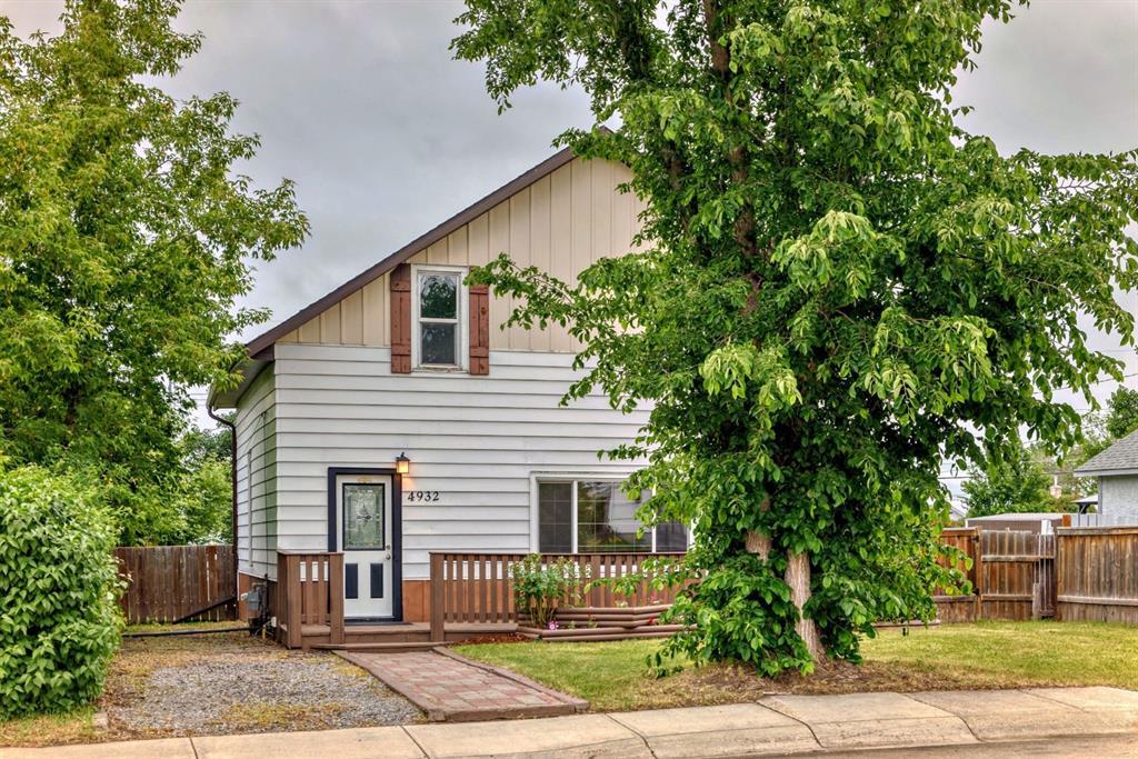 This charming two story home offers so much! Situated on a fenced and landscaped lot, this home is a SHORT WALK TO THE SCHOOLS, downtown shopping and more! Sip your morning coffee on the front SOUTH FACING deck. Newer shingles, soffit, fascia, and eaves-trough complete the outside. Now step inside to cozy charm! Enjoy cooking in the large kitchen complete with generous size island. Dine in the separate dining area which is connected to your living room. Laundry and half bathroom round out the mainfloor. Then go up to 3 generous size bedrooms, and a large bathroom with a walk in closet for storage, corner soaker tub and separate corner stand up shower. Windows and furnace have been replaced. Hot water tank was replaced in November 2023. This homes feels newer but they have kept the character and charm!