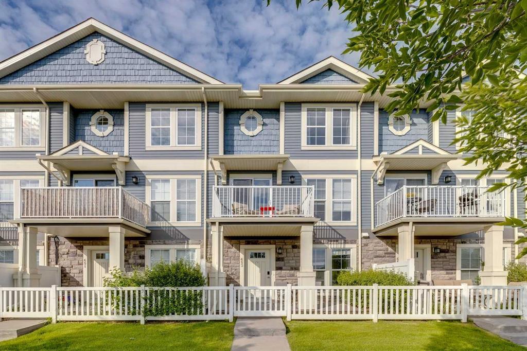 Welcome to this beautiful townhome in the lake community of Auburn Bay. With over 1,481 sq ft, this home features 2 primary bedrooms, a computer area, 2.5 baths, and a double attached garage. Move-in ready, it showcases pride of ownership throughout. This east-facing walk-out entry property overlooks a spectacular pond, park, and walking path, with direct access from the street. The large open entrance includes a main floor flex room with heated floor, perfect for a home office or workout space, with access to the double attached garage. The entry is fully tiled, and the flex room boasts tasteful laminate flooring. Upstairs, the main level features hardwood flooring, a huge chef's kitchen with a breakfast island, gorgeous granite countertops, and stainless steel appliances. Enjoy your morning coffee on the east-facing balcony while taking in the stunning view of the pond. The wide open plan is ideal for entertaining and offers a very functional layout. On the upper level, there are two primary bedrooms, each with its own en-suite (one with a full 4-piece bath, the other with a 5-foot walk-in shower) and walk-in closets with organizers. The laundry room, located just off the kitchen, includes a large window for natural sunlight. All levels are bathed in natural light due to the large windows. The front yard is fenced for your private use and creates a welcoming ambiance for visiting guests and extended family. This home is in an exceptional location, within walking distance to the beach, skating, and the Auburn House community facility. The South Health Hospital Campus, new library, YMCA, shopping, and restaurants are only minutes away. Pet-friendly and part of a well-managed complex, this townhome offers fantastic value.