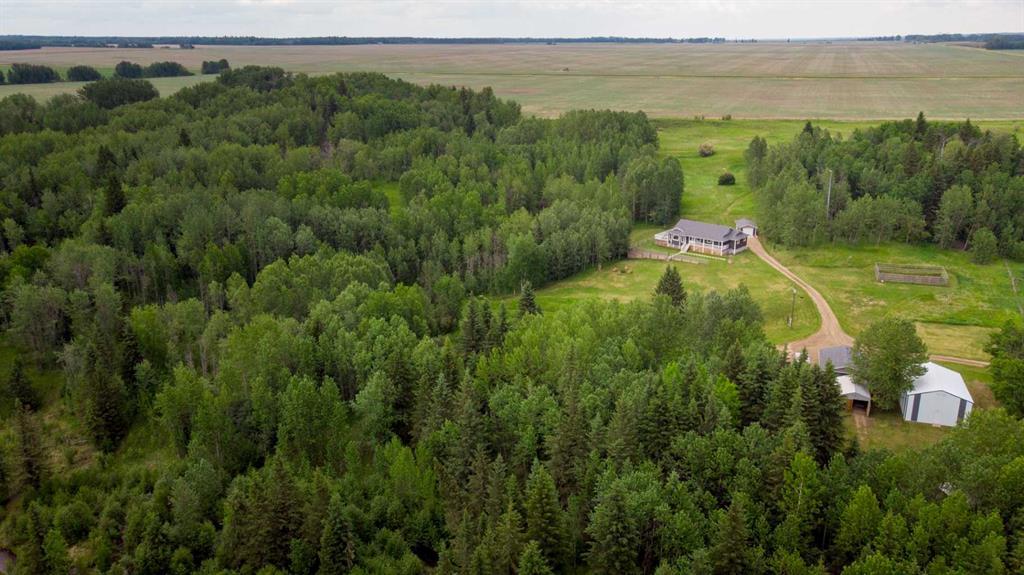 Discover the epitome of luxury and nature with this 1744 sq ft high-end ranch-style bungalow. Crafted with meticulous attention to detail, this home offers a harmonious blend of sophistication and rustic charm, making it perfect for those who cherish comfort and the great outdoors. The primary suite features direct access to a private deck and hot tub, a luxurious 12x12 en-suite with a freestanding soaker tub, a beautifully tiled walk-in shower, and a large walk-in closet with built-in organizers. The gourmet kitchen, designed for culinary enthusiasts, boasts stunning quartz countertops, an island, a gas range, and a built-in oven and microwave. The open-concept layout flows seamlessly into the main living area with vaulted ceilings, creating an airy and spacious environment, with access to the deck and breathtaking views from every window. Open and covered decks envelop the house, offering multiple vantage points to appreciate the incredible views of the treed country setting. This property is a nature lover's dream, featuring 70 acres of rolling land with Deep Creek running through, groomed trails, and a furnished log cabin by the creekfront for endless exploration and adventure. Enjoy cozy evenings by the fire pit near the house or down at the cabin, immersing yourself in tranquility. Additional features include a 14'x24' single detached garage, a 26'x32' workshop with a bathroom, a 30'x40' storage shed, and tractor storage with a lean-to. Situated close to the Athabasca River and Riverside Park/campground with a boat launch and access to thousands of acres of crown land, this property is ideal for outdoor enthusiasts. The beautifully treed landscape is abundant with wildlife, offering a picturesque and serene living environment. If you love nature and living off the land without compromising luxury, this property is your perfect match.
