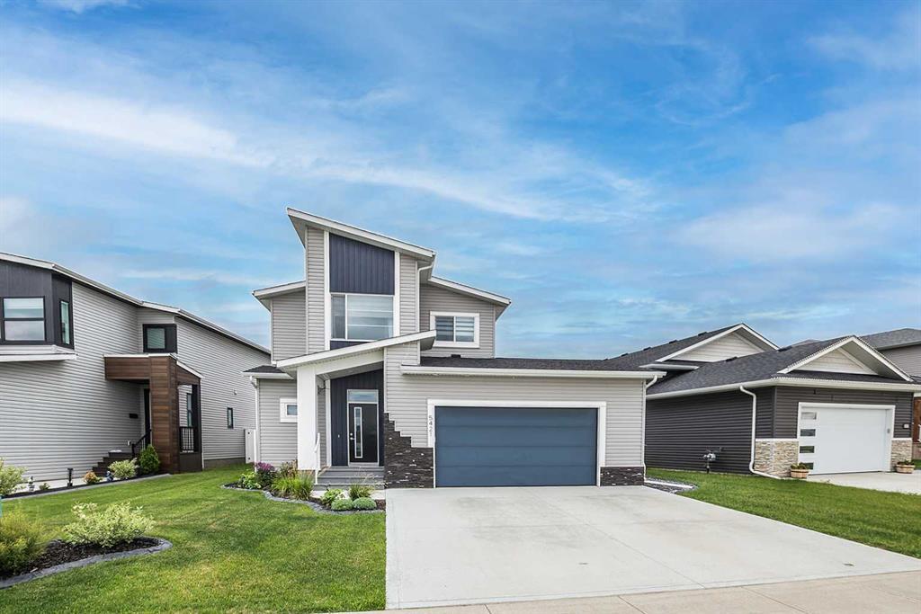 What an incredible home backing onto a green space and seconds away from one of the best playground parks in Blackfalds! This beautiful 2 storey has all the features you'll love! Open concept main floor plan. Kitchen features upgraded stainless steel appliances, extra large island with quartz countertops. The living room has an electric fireplace with shiplap and a wood mantle. The dining area is spacious and has a garden door out to the deck & yard. Also on the main floor is a mudroom off the garage with laundry room, a 2pc. Bathroom with a feature wall. Upstairs you'll find a bonus room, 3 bedrooms and 2 full bathrooms. The primary bedroom overlooks the green space and features a large walk in closet, a 4pc ensuite bathroom with shower, & double sink vanity. The basement is waiting for your ideas. Other features: central AC, an oversized attached garage measuring 26x24 and is heated! Professional landscaping with concrete curbing, deck with wooden pergola & lower patio. Fully fenced with vinyl and a gate to the green space. In-floor heating in basement roughed in. This home is also conveniently located nearby Abbey Rec Centre.