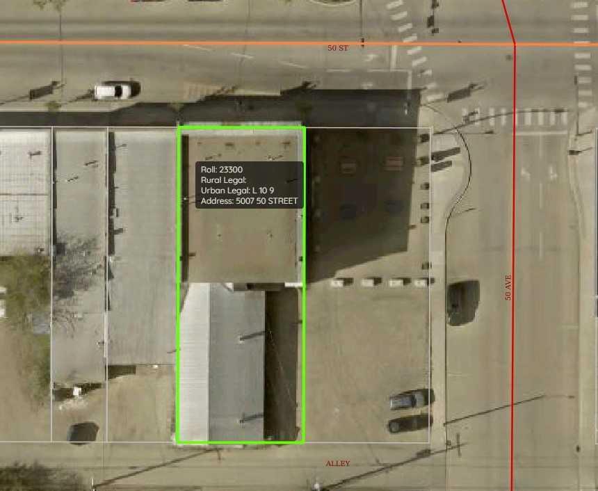 On the busy intersection of "Bankers Corner" - the center of Downtown Innisfail. 50 (Main) Street and 50 Avenue. A great area for your new building and business. Will be sold together with adjoining lot MLS A2144568