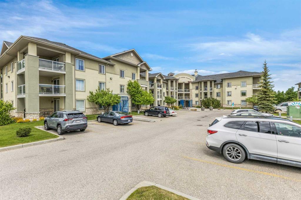 Located adjacent to the ridge above Fish Creek Park and the access point from Marshall Springs, this top floor corner unit in Fish Creek Pointe has a lot going for it. It starts with the aroma from the towering pines at this end of the park which are only a stone’s throw away and well within everyday views. Adding to it all is the visual of the pond across the way when you are outside on your spacious south facing patio or from your living room inside. The unit itself is one of the largest in the complex and offers nearly 1000ft2 of interior living space with two bedrooms, on opposite sides of the apartment, one of which has its own ensuite bath and the other takes advantage of the large four piece bathroom. Spaciousness is the theme throughout starting with the very generous foyer, which leads to the open kitchen dining and living area, each sharing the ample space equally so you never feel short changed. Storage is also plentiful from the cabinets, to the closets and the in-unit storage room. The kitchen has a large breakfast bar and readily encourages conversation into both the living and dining area. The living area itself is anchored by an attractive corner gas fireplace and abundant windows. Laundry is a breeze with the newer stacking pair conveniently located in the unit. Parking is provided with one assigned, energized surface stall just outside the main doors. There is a leased surface stall included that is paid until end of June 2025. The current rate is $75 per month ($900 annually) but is subject to change. Unit owner has option to renew or give it back at that point. The condo fees of $614 per month include all your utilities, even electricity. Just a short drive onto Stoney Trail or over to the LRT, with bus stops for both the 11 and 12 Southwest Loop routes right outside of the building, transportation options are very good in this location. The amenities of both Shawnessy and Buffalo Run are also very close and convenient. All of this adds up to a tremendous offering. Come and see for yourself today!