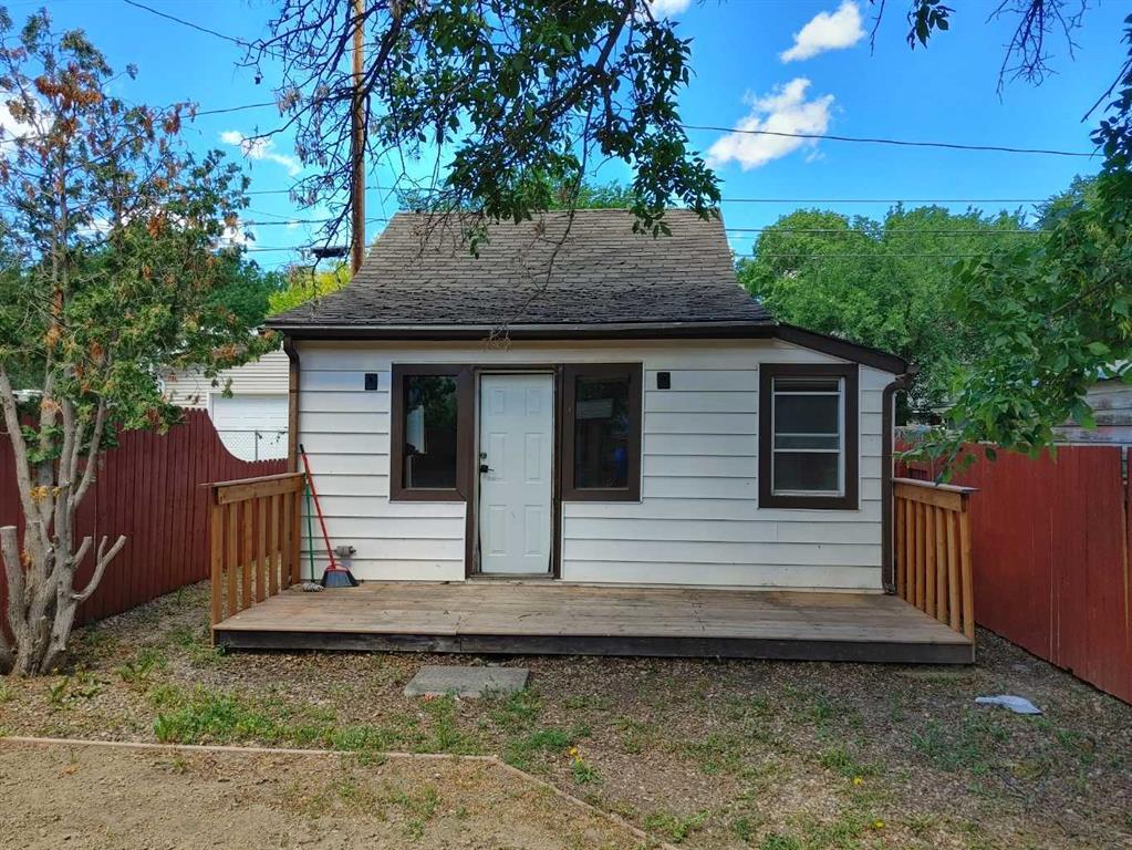 Perfect for first-time homeowners or as a revenue property, this charming bungalow offers affordable living on a tree-lined street. Features include one bedroom with built-in drawers, a four-piece bath, and a loft that could be used as a second bedroom. The home sits at the back of the fully fenced yard , for optimal privacy, and boasts a 6x12 storage shed, two lawn areas, and a wood deck out front. Enjoy the convenience of off-street parking. Make this delightful home yours today!