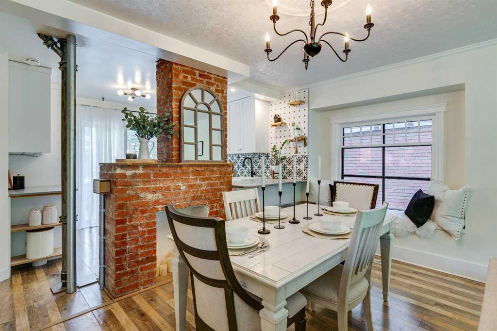 Across from Bow River | Tastefully renovated character home | Downtown views | Minutes to off-leash dog park & pathways | Nestled in the heart of beautiful Sunnyside, this delightful 2-storey character home offers affordability and an unbeatable location directly across from the Bow River and magnificent downtown Calgary. Just steps from Prince's Island Park, you will enjoy immediate access to scenic walking paths, bridges, and a host of amenities, making this a truly vibrant community with amazing neighbours and all the conveniences of city living. The upper level of this home features laminate flooring, two spacious bedrooms (both with great closet space), and a full bathroom with spa-like bathtub, new vanity, and new mirror. The primary bedroom boasts spectacular views of the river and downtown skyline (especially in the winter!), providing a serene retreat after a long day. On the main floor, a bright enclosed porch/mudroom welcomes you, leading into the main living space featuring luxury vinyl plank flooring and a versatile front sitting room that can also serve as a dining room or office, filled with natural light from numerous windows. The dining room area is especially charming with a cozy bench seat and the original brick fireplace, adding to the home’s character. The kitchen is both functional and inviting, offering a breakfast bar and direct access to a back deck and a fully fenced backyard, perfect for outdoor entertaining and relaxation. The backyard features a shed and parking space for 2-3 vehicles, with the option to add a garage with a carriage house for additional convenience and potential guest accommodations. The full-ceiling height basement has windows, laundry facilities with sink, and ample storage space, ensuring all your practical needs are met. This home is a true gem, combining historic charm with modern conveniences in one of the most sought-after neighbourhoods. Don’t miss the opportunity to make this picturesque property your new home. Call today to schedule a private showing and experience the unique charm of this Sunnyside home for yourself! Steps to an off-leash dog park. 5-minute walk to the new And Some Flower Cafe. 12-minute walk to Safeway and LRT. One block to Bow River Pathway Bridge at Memorial which leads to Prince's Island Park. Enjoy easy access for floating down the river in summer. Steps to the Memorial Dr "workout" stairs up the side of the hill leading to Crescent Heights Lookout Point. Quick access to the zoo & Deerfoot Trail.