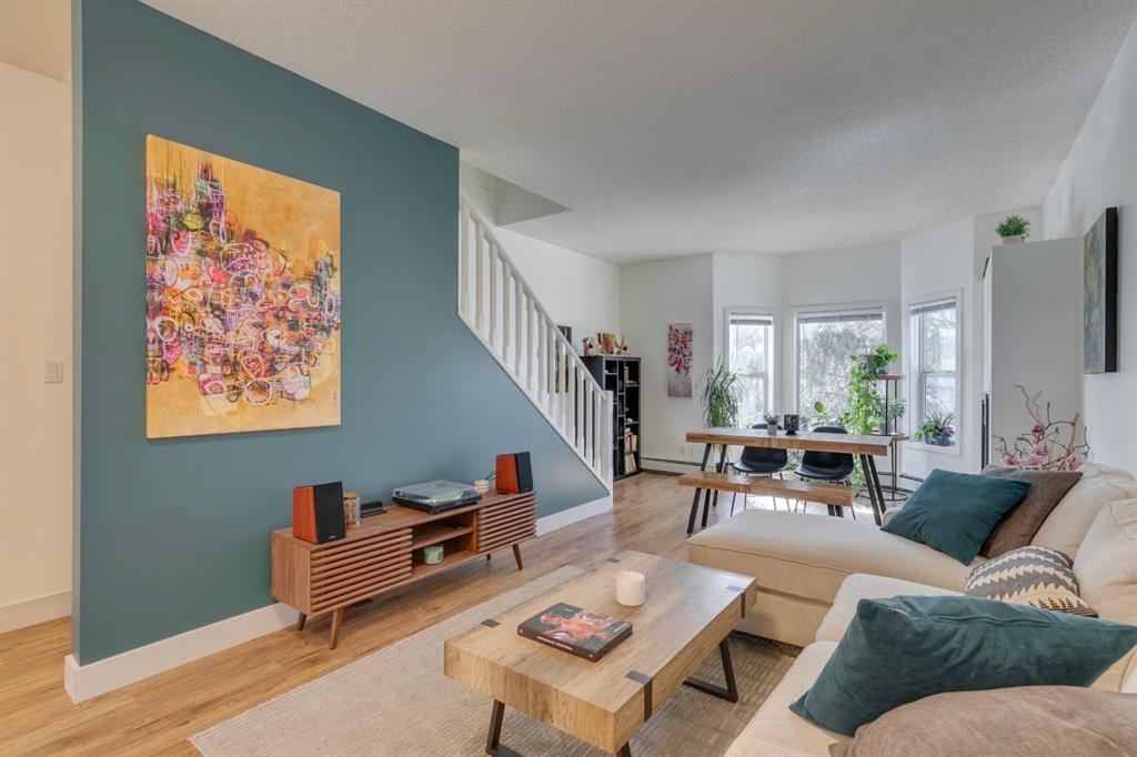 Discover refined urban living in this rare 2 bedroom, 2.5 bathroom, with added LOFT, townhouse nestled in the vibrant heart of Bankview! Upon entering up the stairs, you're greeted by an open floor plan, that seamlessly integrates living, dining, and kitchen areas, ideal for both entertaining and daily relaxation. The inviting open kitchen, blends functionality with style, creating a hub for culinary adventures and socializing alike, while enjoying the convenience of ample storage and new appliances . Outside, three private balconies offer serene views of the city skyline, enveloped by tall, mature trees that provide natural privacy and tranquility. The loft area adds additional versatility, whether as a cozy retreat, functional office space, or creative space. The generously sized, sun bathed primary bedroom has gorgeous vaulted ceilings, an en-suite bathroom, ample closet space and not too mention a nightly spectacle with stunning sunset vistas, creating an overall picturesque get-away, and the secondary bedroom with the incredible skyline view. The warmth of community is definitely felt within the neighbourhood of Bankview, but as well as with the kind-hearted neighbours in a pet-friendly environment (dogs allowed!). Nearby parks and playgrounds provide perfect opportunities for outdoor activities, while your own private sunlit top terrace offers all-day sunlight for gardening or relaxation. Additional luxuries include new laminate floors (2023), new carpet (2024) throughout, new paint, (2023), new dishwasher (2024 - NEVER USED!), new stove (2024), an in-unit washer and dryer, and the convenience of TWO heated underground parking stalls. Also please note *MONTHLY CONDO FEES INCLUDE EVERYTHING* except electricity, ensuring effortless living and budget management. Located in a bustling inner city locale, a short stroll leads to 17th Ave's renowned cafes, boutique shops, fine dining, and vibrant nightlife. Access to parks and public transport further enhance the convenience of urban living. Don't miss the opportunity to reside in this gorgeous sanctuary where fresh updates, multiple outdoor retreats, breathtaking views, and an elegant lifestyle converge seamlessly. Schedule a private tour today and experience unparalleled city living at its finest!