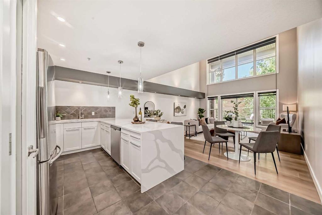 In a prime location just steps away from trendy Marda Loop and minutes to 17th Ave, you will find this unique loft style condo. Soaring 17ft ceilings and large windows invite you into this open concept floor plan that you'll be sure to enjoy. The kitchen has been beautifully upgraded with stainless steel appliances, a waterfall quartz countertop, and luxury vinyl plank flooring. Effortlessly blending into your living area, there is a great combination of functionality and style as you walk out to the large outdoor patio space. This multi level home makes the bedroom its own private retreat with a large walk-in closet, renovated ensuite, and grandeur soaker tub. Additionally, the unit provides convenient main level ensuite laundry, storage, and a half bathroom. View this property today to see the many amenities, shops, and South Calgary parks in the area! 1 titled, heated underground parking stall is included.