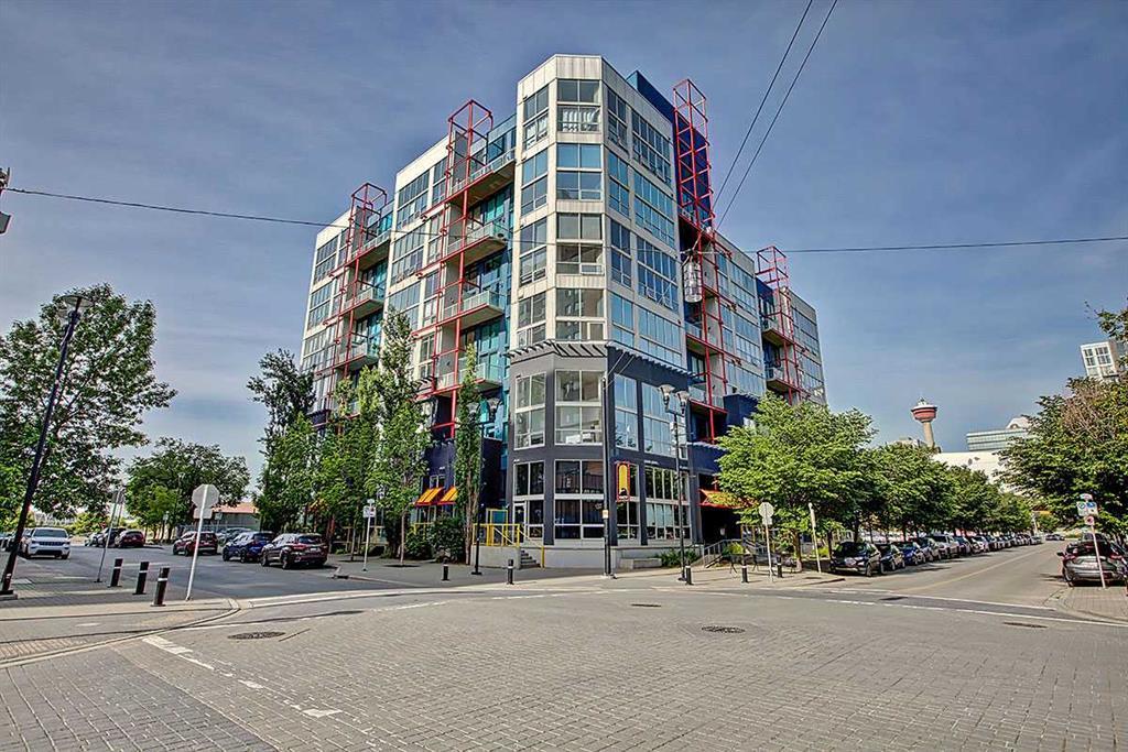 Discover urban sophistication in this stunning two-level loft in the vibrant East Village, a dynamic neighborhood known for its culture and entertainment. This expansive loft features lofty ceilings, floor-to-ceiling windows, and sleek concrete floors. The kitchen boasts stainless steel appliances, ample storage with built-in cabinets, and potential for future open shelving or upper cabinets. The main level includes a well-appointed four-piece bath and in-unit laundry closet. Ascend to the loft to find a generously sized bedroom with wall-to-wall hardwood floors and ample closet space. Enjoy your private east-facing balcony, perfect for morning coffees and evening BBQs. Colors offers secured underground parking and building amenities such as a party room and a rooftop patio with additional BBQs, ideal for entertaining and watching the Stampede fireworks. The prime location provides easy access to shopping, dining, entertainment, the Bow River pathways, and public transit, with downtown just a leisurely stroll away. This renovated unit features wall A/C, a soaring 18-foot wall of east-facing windows, and a stylish kitchen. With low condo fees, this loft is truly one of a kind. Contact us to book your showing today!