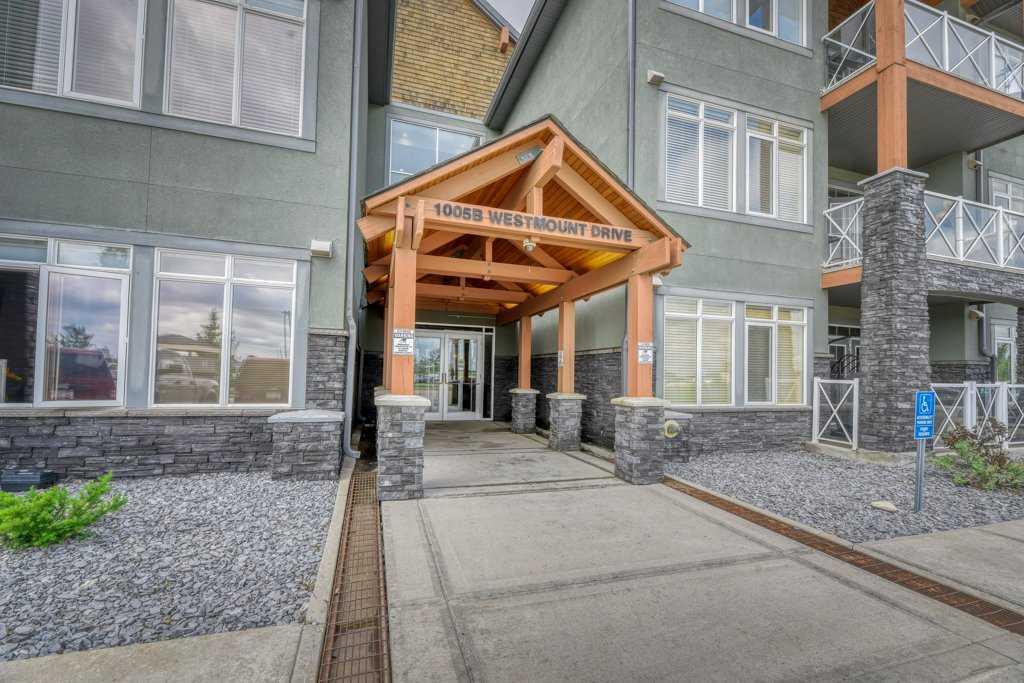 UPDATED 1 BED, 1 BATH // MAIN FLOOR UNIT // IN-SUITE LAUNDRY // 3 TITLED PARKING STALLS + STORAGE LOCKER // Welcome to Unit #111, 1005B in The Savana! Freshly painted & move-in ready with 9’ ceilings! Includes new luxury vinyl plank flooring throughout, new baseboards, updated light fixtures and Stainless Steel appliances! This Unit is light, bright & open! Easily entertain family & friends in the spacious Dining, Kitchen & Living Room areas. The Kitchen includes an eat-up Breakfast Bar and Granite Counters with plenty of cabinetry and surface area for storage & meal prep. The Living Room includes a Gas Fireplace with direct access onto the large Patio with Gas Hook-up for the BBQ. The Primary Bedroom is spacious and includes a Walk-Through Closet with additional access into the 4-Piece Bath. In-Suite Laundry is located just off the Front Entry, next to the Front Closet. 3 Titled Parking Stalls are included: 2 Heated, Underground Parking Stalls (Tandem) with Storage Locker + 1 Outdoor Surface Stall (located just steps from the Unit’s Patio). Located in the highly desired community of Strathmore Lakes Estates with the lake, walking path & playground right across the street, this Unit is one to see! Book a showing today.