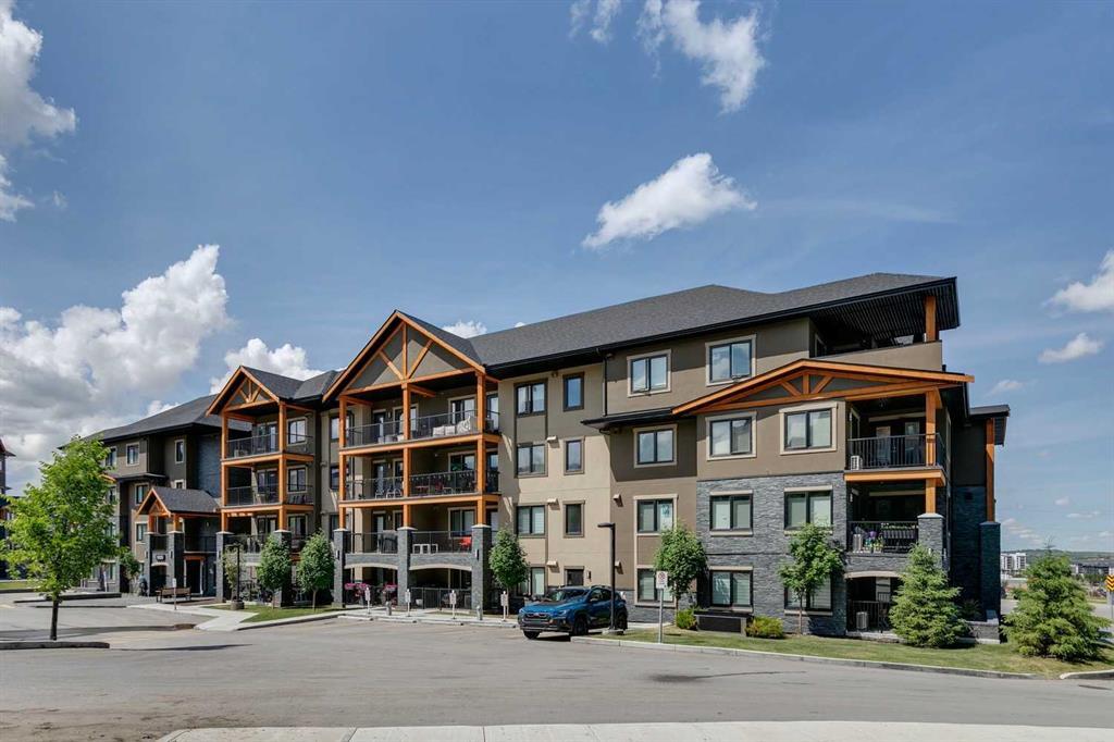 Nestled in the heart of Kincora, “The Pinnacles”, is a wonderfully appointed 18+ building w/a Canmore feel. This spacious one-bedroom condo w/664sq.ft takes advantage of every square foot. Extremely well-maintained home still feels new and is loaded with upgrades including 2 TITLED PARKING stalls! (1 surface stall, 1 underground stall) As you enter, you will be greeted by an abundance of natural light plus upgraded vinyl plank throughout the main living space. Beautiful crisp white kitchen w/ soft-close cabinets, quartz counters, stainless steel appliances, undercabinet lighting plus upgraded backsplash & faucet offers a great space to cook and entertain. Large island provides great prep space & extra storage while still having room for stools! Living room can accommodate your furniture w/bright, West facing windows w/door leading out to your private patio…complete with gas line. Bedroom is well sized and can easily fit your king bed & furniture. Great walk-through closet has a cheater door into your 4-pc bathroom. Clean subway tiles in the tub/shower plus upgraded vanity offers drawers for better storage. In-suite laundry w/full size washer & dryer is perfect. Need an office space? Pantry was redesigned to offer the perfect spot for your computer. What’s better than being able to shut the doors when you are done? 1309 sides the stairwell so you are only sharing a wall w/one neighbour. Quiet building w/pride of ownership throughout plus video security w/numerous cameras and secure bike storage for peace of mind. Great location w/easy access to Stoney Tr and endless amenities including the Walmart, Dollarama, Tim Hortons and plenty more!