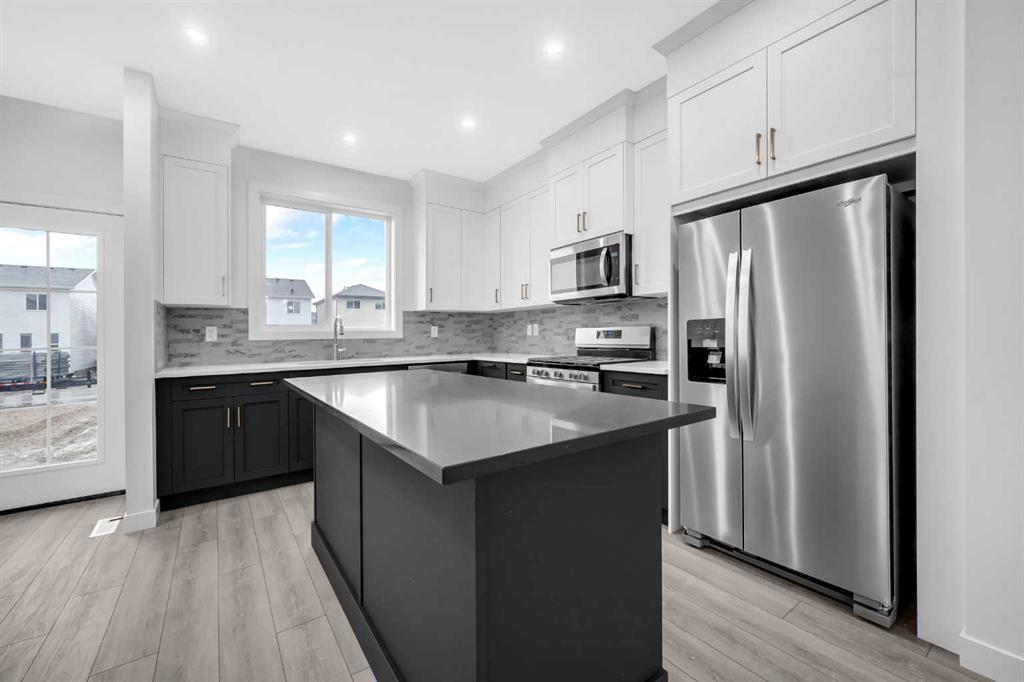 JUST REDUCED! ------ Bright and modern, brand new lane home, located in Ambleton. This detached home boasts an open concept with ample living space and numerous upgrades both functional and flattering. The two-tone kitchen with granite countertops, tile backsplash, and unique storage systems is equipped with stainless steel appliances (with extended warranty) and creates the perfect blend of contemporary and luxury in the home. Enjoy lots of natural light from the additional windows, while the black door handles, towel bars, lighting fixtures, pot lights and stairway railing/lighting add a sleek touch to the home. Experience easy access to Stoney Trail, numerous schools, shops, restaurants, parks and recreation centres just minutes away. The home was built with a side entrance to the basement, with 9ft ceilings, suitable and zoned for suite development - subject to approval/permits from the city (UP TO $10K IN REBATES AVAILABLE). Come view this amazing opportunity in a growing community with endless amenities and more to come.