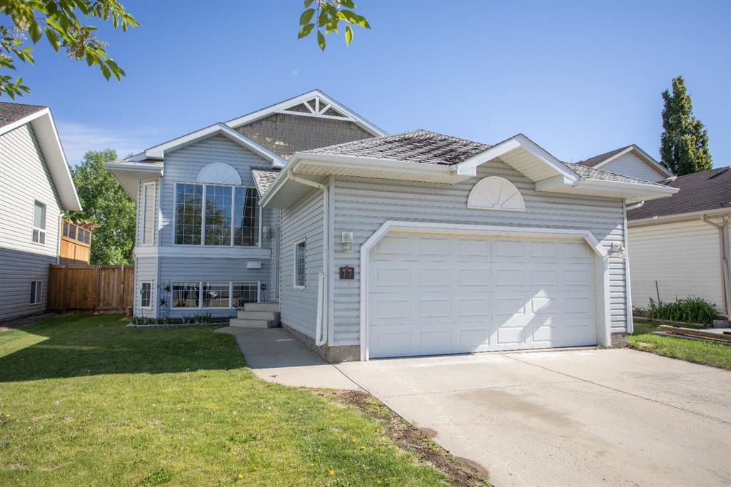 Welcome to 77 Briarwood in Blackfalds! Your new fully developed home is in a central location in Blackfalds with easy access to schools and walking paths. The yard is totally fenced (2017) and backs on to a green space which houses a community garden! Never worry about having neighbors behind you and enjoy your full yard as you could use the community garden behind you. Enjoy having 3 bedrooms on the main floor (one room with new carpet) with the primary bedrooms having an ensuite & walk in closet. The basement was renovated in 2015. The basement has large windows providing a ton of light. The bathroom was also redone in 2015 – the bedroom is HUGE! Hot water tank was replaced less than a year ago.