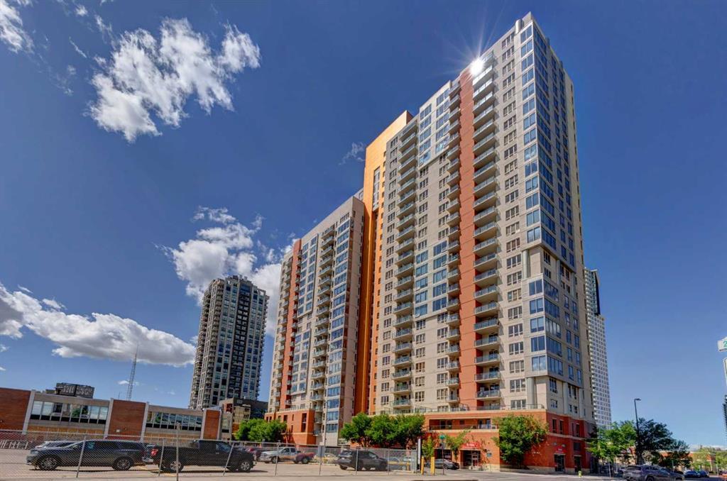 Welcome to this beautiful Corner unit owned by the original owner with a prime location in downtown and STUNNING Panoramic DOWNTOWN VIEW. This 2 Bedrooms, 2 Bathrooms unit offers a large living room with huge windows to allow lots of natural lights to beam in . This SE Corner Unit overlooking the City includes large balcony, Titled and secured UNDERGROUND parking, Laundry in the unit, open concept living room & excellent floor plan. Very rare Opportunity to pay the condo fee including all your UTILITIES. You will also enjoy the Fitness room, steam room, bike storage area, secured visitors parking and enhanced security with a 24/7 concierge in the building. Great location with Co-Op shopping steps away, great restaurants, close to C-Train, high grade schools, Walk to Work, and easy access to everywhere in the City.
