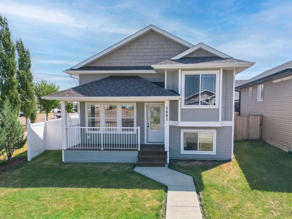 Step into this stunning former show home, located on a large corner pie lot in the desirable Cottonwood Estates neighborhood. The inviting front covered porch welcomes you into a spacious front entry that seamlessly flows into the open-concept main level. Soaring vaulted ceilings enhance the bright and airy feel of the living space, which includes a dream kitchen featuring a gas stove, pantry, and ample countertops and storage. The main floor offers a luxurious Primary bedroom complete with a 3-piece Ensuite bathroom and a walk-in closet, alongside two additional bedrooms and a 4-piece bathroom. The perfect mudroom, located at the back entry, provides an organized space for everyday essentials. The fully finished basement is designed for entertainment and comfort, offering a large family/rec room, perfect for hosting guests with a pool table and TV sitting area with an electric fireplace feature. The basement also includes an additional bedroom, a den that can be converted into a 5th bedroom, a beautiful 3-piece bathroom, and a large laundry room with a sink/cabinet. Modern amenities like new in-floor heating and new hot water tank (Both come with transferable Warranty) A new higher efficiency sump pump has been put in (Buyer will need to have it routed outside). The Electric Fireplace and TV wall mount will stay on the wall in the Basement. Outdoor living is equally impressive with the convenient back deck equipped with a gas line for BBQs, perfect for summer gatherings. Lots of room for summer activities in the side yard as well. The large detached dream garage comes with extensive shelving for your tools, while the adjacent parking area provides space for an RV or extra vehicles, eliminating the need for street parking. New RPR with this home purchase. The home is conveniently located just a few houses away from a playground, close to schools and shopping. Move in and just enjoy!