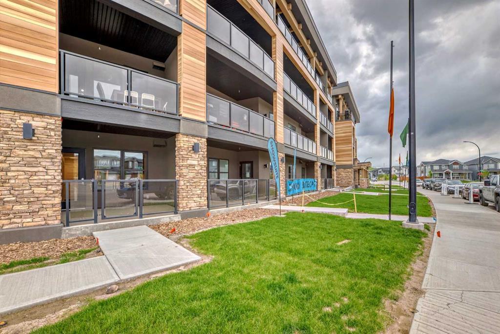 BRAND NEW 2 BEDROOM LUXURY UNIT| COVERED WALK-OUT BALCONY| QUARTZ COUNTER TOPS | LVP FLOORING| PREMIUM BUILDING| UNDERGROUND TITLED PARKING| SEPARATE STORAGE LOCKER| WALKING DISTANCE TO THE RIVER |LOW CONDO FEE| AIR CONDITIONED! Located in an upscale complex. Luxury 2-Bedroom Condo! Discover the "Ash" package with a registered size of 669 sq. ft. This unit has $12,400 in upgrades! Open concept main level features a living room / dining room / kitchen combo featuring quartz counter tops, luxury vinyl plank flooring, neutral tones and a walk out to the large, covered balcony which is also a separate entrance. There is also a master bedroom and a 2nd bedroom / den as well as a 4-piece bathroom, laundry room and storage. Also included is separate heated, titled underground parking stall and a separate storage locker. This complex is in walking distance to the Bow river natural areas. Start living the good life today!
