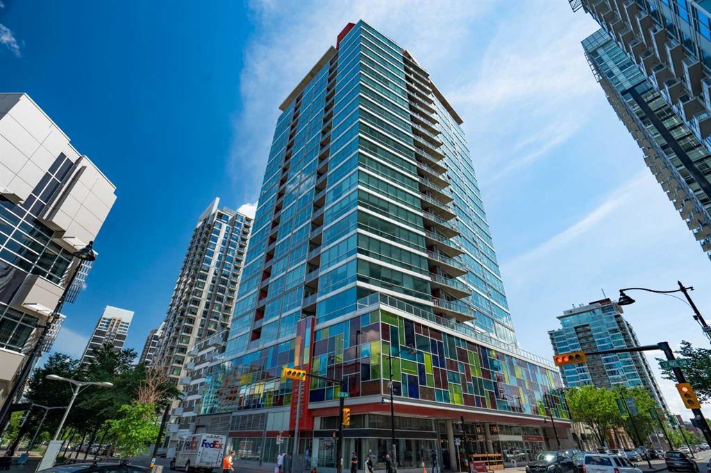 Welcome to unit 1304 at the Colours by Battistella, a stylish urban retreat in the heart of Calgary’s vibrant Beltline district. This stunning condo is perfect for a first time buyer or investor with it being Air BnB friendly. This condo offers contemporary living with breathtaking city views while being in the heart of the city, perfect for those seeking both comfort and convenience. Upon entering, you're greeted by a spacious open floor plan that seamlessly connects the living, dining, and kitchen areas. Floor-to-ceiling windows flood the space with natural light, enhancing the concrete floors throughout. The kitchen boasts stainless steel appliances, stone countertops, and ample storage, making it a chef’s delight and an ideal spot for entertaining guests. The spacious primary bedroom is a peaceful sanctuary with a large closet and window. The second bedroom provides flexibility for your lifestyle needs with a generous closet or can be utilized as a perfect office space. Completing this unit is a secure underground parking space, bike storage and a 4th floor terrace for outdoor entertainment or relaxation. Located just steps away from Calgary’s finest dining, shopping, and entertainment venues, this condo offers the ultimate urban lifestyle. Whether you’re enjoying a morning coffee on your private balcony or exploring nearby parks and cultural attractions, every day brings new opportunities for adventure and relaxation.