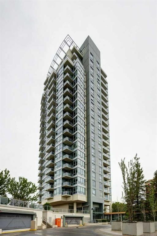 Welcome to Brava, a safe and secure building in the prestigious Westgate Park complex. Within walking distance to amenities, transportation, golf course, and minutes to downtown Calgary. This beautiful 2 bedroom 2 bathroom unit is located on the 8th floor with views of the city skyline and has been recently updated throughout with newer carpet and paint. The large primary bedroom comes equipped with a walk through closet with built-ins leading into a 4 piece ensuite. An additional bedroom and 3 piece main bathroom can be found inside the unit. The large kitchen is equipped with a breakfast eating bar and granite countertops. The kitchen is open to a large living area with a corner gas fireplace and views of the city skyline and mountains from the large windows. Just off of the living area, doors leading out to an East facing balcony boasts the same beautiful view. The unit is complete with in suite laundry and an abundance of storage space. The unit comes with a titled parking stall and an assigned storage locker. The complex is safe and secure with 24 hour security and a +15 leading to multiple amenities such as an indoor pool, hot tub, fitness room, bike storage, and a party/rec room. Perfect for an investor or professional couple. Exceptional value!