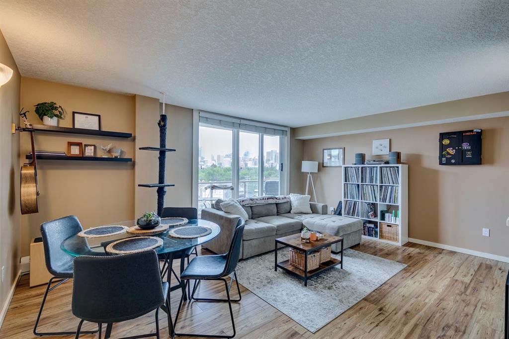Talk about checking off your boxes - downtown VIEWS, two bedrooms and secure covered parking! This spacious unit is perched on the 5th floor of this quiet CONCRETE tower with no post-tension cables and features full-sized in-suite laundry and TWO storage lockers! The location can't be beat with Calgary's top cafes, restaurants, shops, groceries, boutiques and other amenities within a 15 minute walk. The Bow River is just three blocks away, Riley Park two blocks away, Sait and AUArts just up the hill and the commercial downtown core within walking/biking distance. This is the urban lifestyle you have been dreaming of! Modern unit has brand new dishwasher and fireplace and is in great shape throughout. With 850 square feet of space, there is room for a proper living room set and dining table as well as plenty of cabinet space in the kitchen. Both bedrooms are nicely sized and the full bath is clean and updated. Fantastic property for an investor or owner occupant alike!