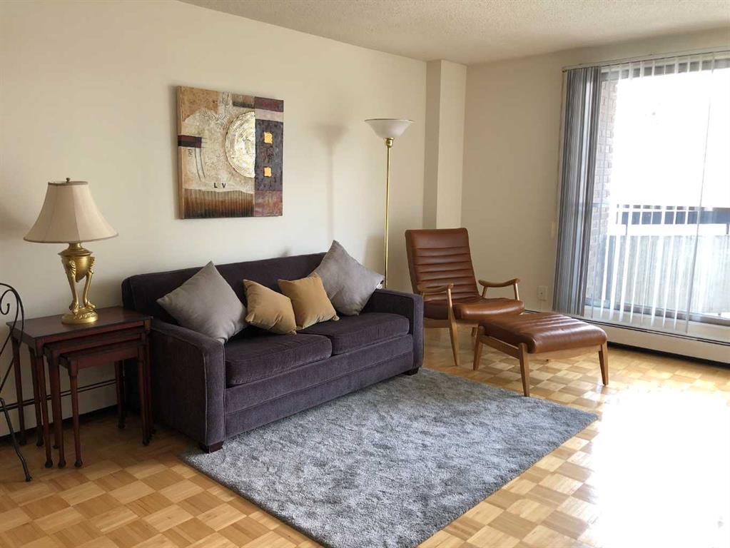 "Park 300 Pallisades," is a meticulously maintained building nestled in the heart of Calgary's vibrant Beltline neighborhood, An amazing opportunity to own a gorgeous home with a view of Memorial Park and the Calgary skyline beyond. Fully renovated one bedroom and one bathroom, this apartment offers an intelligently designed floor plan that creates a spacious living environment beyond its dimensions. A Gourmet Kitchen featuring beautiful birch cabinetry complete with over/under cabinet lighting & a raised eating bar will make you fall in love with cooking & entertaining! The spacious living room features a spectacular 8 feet of patio window glazing leading to a balcony overlooking park greenery. Back inside, note the luxuriousness of the natural finishes such as real wood parquet floors in the living room & designer slate floors throughout the kitchen, entrance and bath. An oversized master bedroom with custom built in closet, a Spa-like master bath, in-suite storage, secured/covered parking, a fitness centre and indoor salt water swimming pool complete this home! it is only steps to downtown or all the shops & restaurants of trendy 17th Ave. All that is in a fantastic concrete complex that is extremely well managed. This is the home you have been dreaming of!