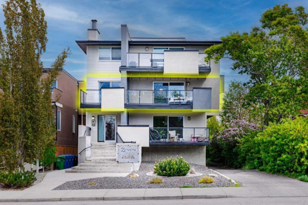 Welcome to the Zeven! This 7-Unit Building offers style and comfort with easy accessibility to Downtown, Parks, Restaurants, Cafes, Universities, and Hospitals. This lovely unit has seen recent modern upgrades that were done from 2019 to 2021. The features of this lovely 2 Bedroom + 1 Den Condo Unit includes a large updated modern open-concept kitchen with plenty of storage, quartz countertops, a large dining area, and an open living area that offers ample natural light. A third bedroom was converted to a den/media room in 2019. Off the media room and dining room areas is your private oversized balcony that stretches the width of the building. Additionally, this unit showcases beautiful vinyl plank flooring (flooring was reinforced, levelled, with sound proofing added in 2019), an updated 5-piece bathroom, and a designated washer and dryer area neatly tucked away behind French Doors. The 2 Bedrooms in this condominium unit are generous in size and offer ample closet space. The interior doors, casing, and lighting have all been upgraded and all the kitchen stainless-steel appliances were replaced in 2020 including the fridge, stove, microwave hood-fan and dishwasher. This unit was painted in 2019 and presents new and clean. Along with this unit comes one covered assigned parking stall. The building is pet-friendly subject to Condo Board approval. Notably, the residents of this complex are respectful, friendly, and noise conscious towards one another. A full building envelope was updated 10 years ago, including all patio doors, windows, stucco, siding, facia, soffits, and eaves. The building also includes a new roof installed in 2020. The Condo Board has been extremely diligent in taking care of this complex and pride in ownership is evident. The building also has a healthy reserve fund and is a self-managed Condo Board. If you are seeking a modern, clean, and affordable 2-bedroom condominium unit steps away from 17th Avenue SW and some of Calgary’s best amenities, do not let this opportunity get away. Book your showing today and experience the magic of living in the Zeven!