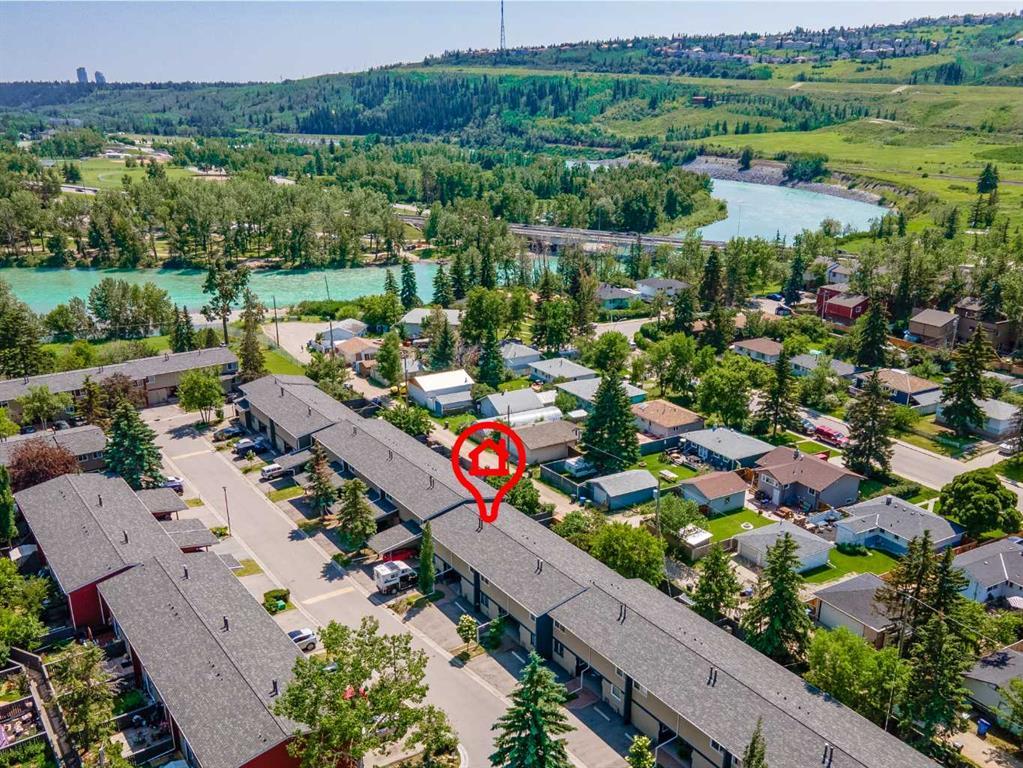 Discover tranquility and convenience at Riverside Village with this charming 3-bedroom, 1.5-bathroom townhome. Nestled near the picturesque Bow River, this home boasts its own private fenced yard adorned with lilac trees, perfect for enjoying the serene surroundings. Recently updated with all-new drywall, paint, upgraded plumbing, and electrical, as well as a new Bath Fitter tub to be installed soon, this residence offers modern comfort and functionality. The kitchen is equipped with brand-new stainless steel appliances, including a washer and dryer set in the clean, potential-filled basement. The spacious living room welcomes you with ample natural light, while the oversized master bedroom features generous closet space. With parking right outside your door, black bin collection from the alley, and a newly installed hot water heater along with a recently serviced furnace, this home is ideally located just 25 minutes from downtown Calgary and an hour and a half drive to the scenic Banff National Park. Riverside Village is an excellent, pet-friendly complex with a secure parking lot for your camping trailer available for a monthly fee. Don't miss out—schedule your viewing today and experience riverside living at its finest!