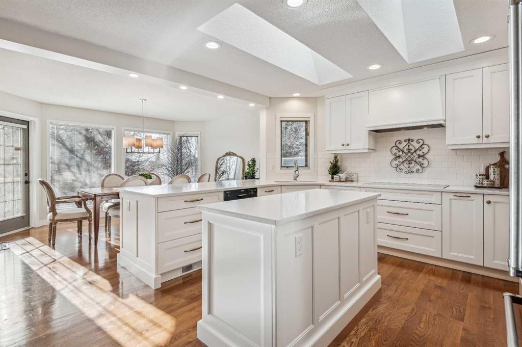 Located in the lovely estate area of Scenic Acres and surrounded by parks and pathways this beautiful Albi built WALK OUT bungalow has been updated and renovated over the last 2 years with uncompromising quality. Not your cookie cutter bungalow, you will appreciate the open yet unique floorplan that has been renovated to update for modern function but retain the character of architectural details. The spacious entry area and living room with its vaulted ceilings, archways, skylight and a complete new gas fireplace,( NOT AN INSERT to allow maximum viewing window)(2023)are perfect for entertaining and cozy evenings at home. The entire main floor carpet and lino has been entirely REMOVED and REPLACED with" SITE FINISHED SOLID WHITE OAK HARDWOOD (2022)"creating a seamless design flow. Other updates include a stunning NEW Legacy Kitchen and bathrooms with premium Maple Lacquered Custom Cabinetry. With the sink tucked in the corner of the island the huge entire countertop is freed up for prep work and entertaining space., no competing with dirty dishes. Highlighting the NEW KITCHEN (2022) are the Stunning Satin Finished Maple Cabinets, Bosch INDUCTION Cooktop, dishwasher and Kitchenaid CONVECTION Wall Oven with co-ordinating French door Refrigerator. Finished with white quartz counters the kitchen is a lovely sun filled area to cook in with the 2 Skylights and surrounding windows in the dining room. Plenty of built in storage contributes to a highly functional chef's kitchen. In addition to the new main floor bath, the pretty ensuite has been updated with a new fully glassed shower, stand alone tub, vanity and heated floor. The spacious primary bedroom with walk in closet has direct access to the deck, a really nice feature in the summer. The main floor laundry is bright and convenient with a sink and lots of storage. In addition to New Paint and baseboards, 99% of POLY B PLUMBING HAS BEEN REMOVED (preventative measure only) and replaced with PEX piping. The huge walkout basement with heated flooring and another fireplace and a wall of windows offers the same natural light that is pervasive in this home. The custom wet bar adds to your entertaining ease. Lots of room to add a pool table. Leading out to the backyard the low maintenance landscaping offers a multitude of perennials and large privacy trees to enjoy in the summer on the patio while inside Air conditioning is welcome on those hot summer days. NEW ROOF in 2023 and the poured concrete ramp running along the steps from the front to the large backyard make your move in so easy ! Excellent shopping at Crowfoot near the LRT and great schools close by!Call your favorite realtor to view!