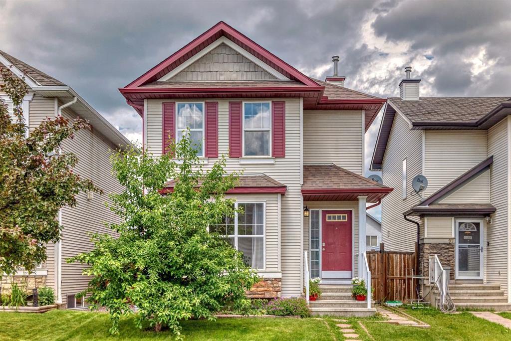 Welcome to this beautiful 2 storey home in the community of Cranston with over 1450 sqft of developed space. As you enter this home you have a generous size Den/sitting room with large front windows. Main floor features tile floors throughout hallway and kitchen area, and beautiful vinyl plank flooring in the living room. Kitchen features maple Harwood cabinets and island with breakfast nook. Upgraded stainless steel appliances and lighting. Spacious living room with windows facing a large backyard ready for a garage or your imagination. 2pc bathroom and back mudroom area leads out to a large deck with a shed that is included with the home. 3 bedrooms upstairs with two 4 piece ensuite bathrooms. Primary bedroom has a walk in closet and ensuite bathroom with jetted tub and stand up shower. Two other bedrooms share a Jack and Jill bathroom and large closets! Basement is partially developed with a large finished bedroom and other rough in framing done, with all the drywall included ready for install. No need to worry about the roof as this home just had a brand NEW ROOF installed on July 3, 2024. Cranston community has so many amenities, clubhouse, ice rink, pathways, shopping and close to hospital. This home won't last long so book your showing today!