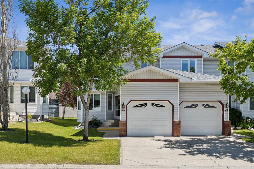 **OPEN HOUSE SUN. July 7th, 12-2 pm**. Welcome to this fantastic corner townhome with close to 2000 sq. ft. of finished living in popular Scenic Acres. Stepping inside you’re sure to enjoy the spacious kitchen with a large eating bar and breakfast nook area. The kitchen features loads of counter space and is perfect for large get togethers. Sleek white cabinets and appliances with a new kitchen stove. The main floor powder room is conveniently located off the kitchen. The living room features a beautiful gas fireplace to enjoy on a cold winter evening. There is space for a large dining table near the entrance through the sliding patio doors to the private back deck with glass railings. Travel upstairs to find 2 spacious bedrooms, each featuring their own 4pc ensuite, plus private walk-in closet. A convenient office/ flex room space separating the 2 bedrooms. Downstairs you’ll find a fully developed basement with a large family room with a built-in wall unit and room for a games table or workout area. Large laundry room and storage space offers plenty of storage. ?Scenic Gardens is an excellent self managed complex with many recent improvements such as new windows, newer garage doors & newer asphalt shingles for each of the units, plus upgraded Triple pane windows for this unit plus a new High Efficient Furnace. Excellent location close to major transit, including walking distance to the c-train, loads of shopping options, schools & playgrounds. This one is one you’re not going to want to miss out on.