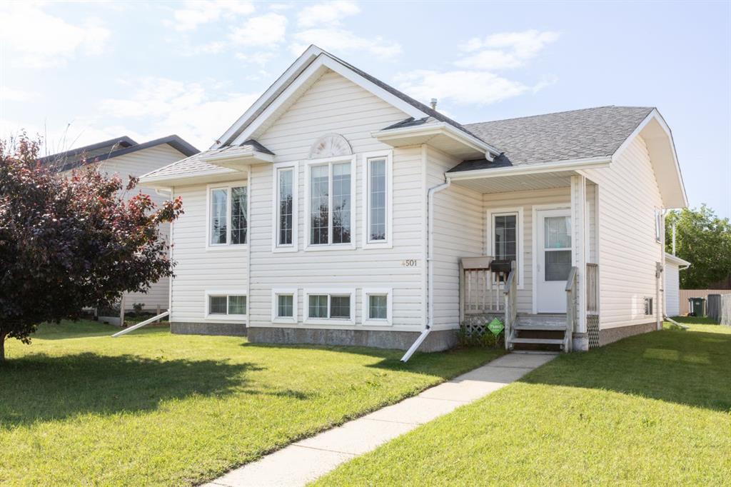 Welcome to Westpark Innisfail ~ EASY LIVING with everything located on the main-floor ~ Close to Schools, Parks, Walking Paths & More. This well cared for home from it's original owner features 2 Bedrooms and 2 Bathrooms. Oversized Detached Garage ~ Tons of natural light floods this home making it feel light and airy. The home has recently had the main-floor painted, new carpet throughout & back deck painted. Open Concept kitchen, dining & living room makes this home super functional and perfect for entertaining. Kitchen offers lots of storage space, pantry and counter tops. Main-floor laundry. 2 Good sized bedrooms on the main-floor as well as a 3pc Bathroom. The basement is partially completed with a 3PC bathroom and utility/storage area. The yard is lower maintenance with south facing deck, a shed for storage and the large garage.
