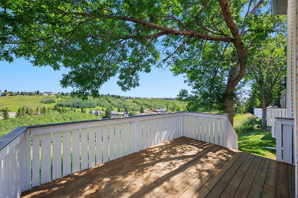 Welcome to Edgedale Gardens, a hidden gem in the popular NW community of Edgemont. This 1542 sq.ft. 2-storey townhouse backs onto a beautiful ravine with inspiring panoramic views and offers an ultra-functional open layout featuring 3 bedrooms, 2.5 baths, and a double attached garage. So much potential in this home with its soaring vaulted ceilings, wall of windows, wood burning fireplace, solid oak railings, and open kitchen to dining to living room plan with easy access to the expansive back deck. Upstairs, you'll find a spacious primary bedroom with walk-in closet and 4-piece ensuite, along with two additional good-sized bedrooms and main 4-piece bathroom. The unfinished basement offers a blank canvas for your customization, with laundry facilities. Recent updates include windows, sliding patio glass door, along with rear deck and railings. Edgedale Gardens is a quiet, inviting and well-run complex, conveniently located close to schools, dog parks and walking paths. This property is a rare find and won’t last long – visit today!