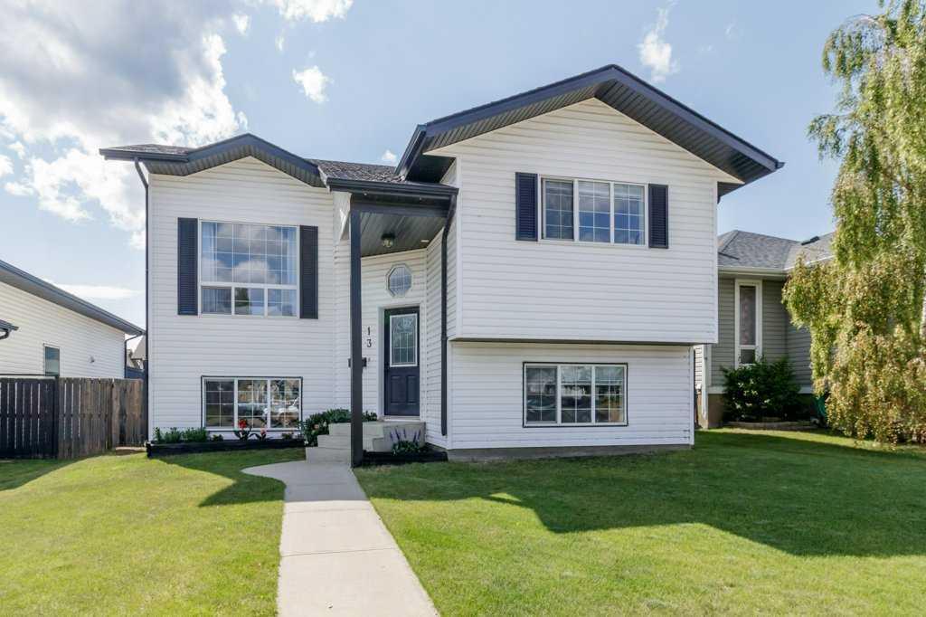 Welcome to 13 Pine Crescent, this fully finished bi-level is found in the sought after subdivision of Panorama Estates in Blackfalds. This home is found in a quiet location close to parks, schools and other amenities. Walk into the spacious entrance and up to the large living area. The kitchen has just recently been renovated to include; beautiful new cabinets with quartz countertops, new backsplash, new plumbing fixtures and an new appliances package. This is open to the dining area, making this a great space to entertain your friends or spend time with the family. There is an abundance of large windows throughout the home that lets plenty of natural sunlight soar through. From the dining area, walk out onto the deck and enjoy the landscaped back yard. There is an oversized double garage, which is fully finished and heated. There is storage under the deck and RV parking in the backyard too. On the main floor, you will find three bedrooms, including the primary bedroom that has a good walk-in closet. The main floor has been repainted and new vinyl flooring has been installed and some new plumbing and electrical fixtures have been installed. The basement is completely developed offering a large family / recreation room with two good-sized bedrooms, a full bathroom and plenty of storage, making this a great space for teenagers to spend time with their friends.