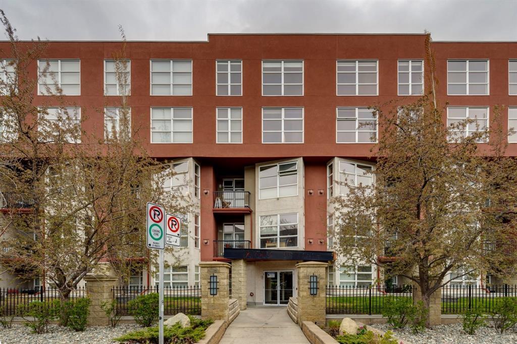 Top Floor 2 bed 1 bath + den SW corner condo in the popular XOLO building. Modern design with an open plan main living area with solid maple hardwood and cozy gas fireplace in the living room. Plenty of natural light floods the unit in from the floor to ceiling South and West facing windows. Kitchen with plenty of cupboards, raised breakfast bar and stainless steel appliance package. Sunny South facing balcony with natural gas hookup. 2 spacious bedrooms with a Jack and Jill 4 piece bath. In-suite laundry with stacked front loading washer/dryer. Secure, assigned underground storage locker and titled parking stall. Steps from the heart of 4th Street entertainment district. Walking distance to DT, transit, 17th Avenue and Stampede Park.