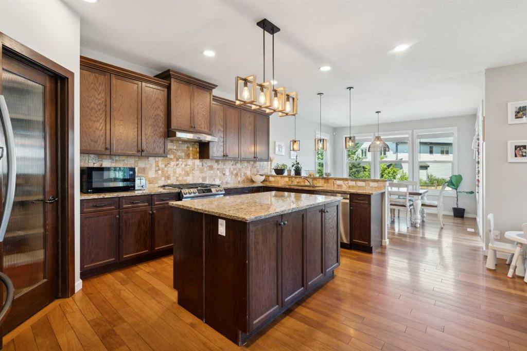 ----- OPEN HOUSE SATURDAY from 3-6 PM (Aug 3rd) ------ Welcome to Mahogany! Welcome to the property with the biggest and most private backyard in the community! This stunning 4-bedroom, 3-bathroom family home offers 2,600 sq. ft. of sophisticated living space on one of the largest lots in the community, nearly 7,500 sq. ft. The main level features Brazilian Walnut Hardwood flooring throughout, an open-concept living area with a cozy gas fireplace, a bright and spacious dining area, and a gourmet kitchen equipped with stainless steel appliances, a gas range, and modern light fixtures. The walk-through pantry leads conveniently to the heated double garage with its own furnace. A versatile front room, perfect for a home office, and a half bathroom complete the practical main floor. On the upper level, you'll find four bedrooms, including a spacious master retreat with an ensuite boasting a stand-up shower, soaker tub, double sinks, and a roomy walk-in closet. The upper floor also includes a central bonus room with a home theater setup perfect for movie nights, a massive laundry room, and an additional 4-piece bathroom. The partially finished basement, with its separate entrance, offers an ideal space for building a secondary unit, made easier by the home's second high-efficiency furnace. This home is equipped with 2 centralized AC units and insulated top to bottom with spray foam for maximum efficiency. Enjoy a beautifully landscaped backyard with a deck, a fun playground, and an RV parking stall. Imagine having friends over for barbecues after spending the day at the lake. Mahogany’s Central Beach site is home to the community’s grand Beach Club, where residents have exclusive access to sandy beaches, a splash park, tennis courts, play equipment, a fishing pier, a non-motorized marina, and more. This home is conveniently located just steps from the Main Beach and Mahogany Village Market, with easy access in and out of the community, free of traffic circles. Don’t miss the opportunity to call this magnificent property your forever home! Book your viewing today! (Viewings start on Friday July 12th)