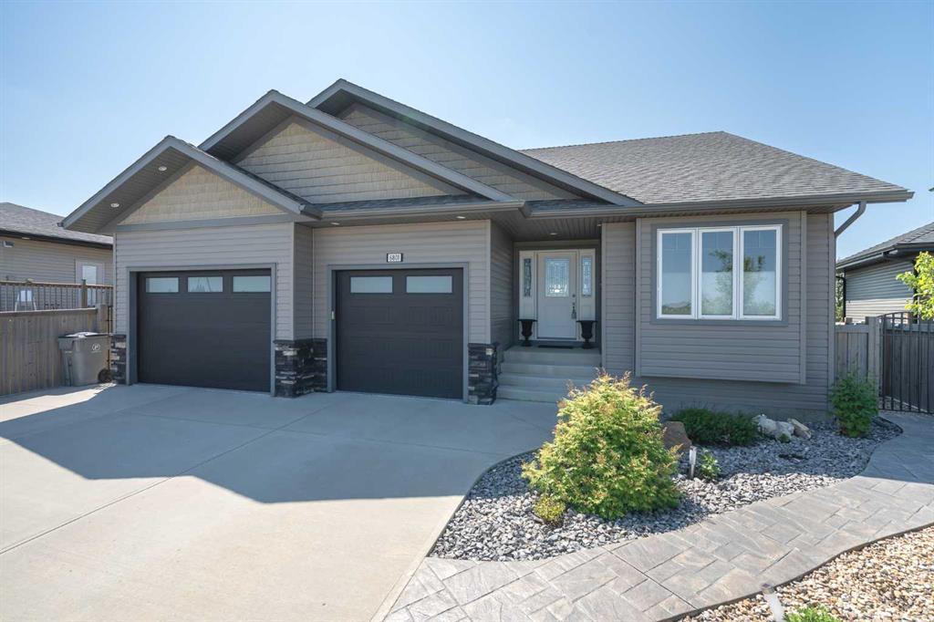 With almost 1,700 SF of living space plus a finished basement, here’s your rare chance to own a beautiful bungalow backing onto Lakeshore lake with the walking/bike path and access to Bud Miller Park just steps outside your door. You’ll have plenty of time to enjoy summer and the park because the maintenance free yard will keep your summer chores to a minimum. This home offers a generous size tiled front entry which leads to the open living space and heart of the home with an open kitchen, dining and living space with a cozy gas fireplace, vaulted ceilings, engineered hardwood and bright large windows to allow the natural light to flow. The kitchen offers ample cabinetry, extra pot drawers, large island for seating, custom wine rack, corner pantry and a stainless appliance package. Off the dining area you’ll find the partially covered 2 tier south facing deck, each level with a gas line, (for BBQ and fire-table) glass railing and outdoor speakers. Off the deck area is a beautiful stamped concrete pathway/patio with firepit. This home is so well designed for those who like to entertain on every level. There are three bedrooms on the main floor, the master bedroom retreat offers a large ensuite with double sinks, spacious vanity, private toilet, large tiled shower/glass door, generous walk-in closet and the convenience of laundry. Notice the large window and imagine waking to views of the lake every day. The fully finished 9’ basement has no wasted space with a stunning wet bar/custom wood countertop, wine fridge, another gas fireplace for the huge family room, 2 more spacious bedrooms, full bathroom and excellent storage space. You'll appreciate the bonus of surround sound for movie nights too. The sparkling clean oversized heated double garage has two doors (12x8) and (9x8). The easy-care epoxy flooring allows for quick cleaning, keeping your garage dust free and there's hot/cold taps too. The rear man door makes access to the rear yard simple and the storage shed offers extra storage. This home is the perfect family home, close to schools, park & quick access to routes out of town. The central vac is roughed-in and this home is air conditioned. Just move in and enjoy this stunning home with all the extras and comforts you need.
