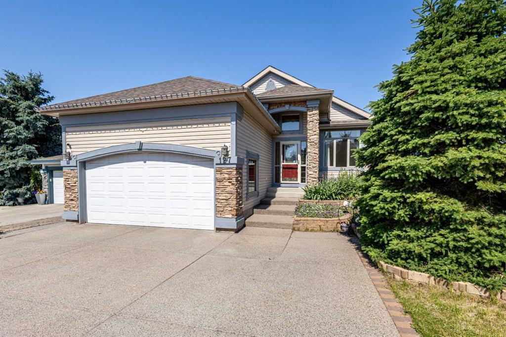 Enter the elegant spacious foyer and you will be delighted with the vaulted ceilings, Oak hardwood flooring, and plenty of large windows offering an abundance of sunlight. And it leads to a lovely and quiet den with a window overlooking the cul-de-sac. The large kitchen with a SKYLIGHT window has many cupboards and counter space, a central island, a corner pantry, a desk area, an eating bar, and newer appliances. The dining room has a patio door to the tiered deck area. The backyard is well maintained, beautifully landscaped and aggregate. Bright living room with focal gas fireplace and large windows with updated window coverings. The primary bedroom is spacious with a walk-in closet and a 4 piece en-suite bathroom with a double vanity, a large steam shower, and an extra SKYLIGHT window for you to enjoy the natural light. The 2nd bedroom has a Murphy bed and built-in desk and storage. Laundry room Upstairs with newer washer & dryer included and access to the double oversized garage with a side door, tons of storage space, and three parking spots on the driveway. Aggregate driveway & side walkway.