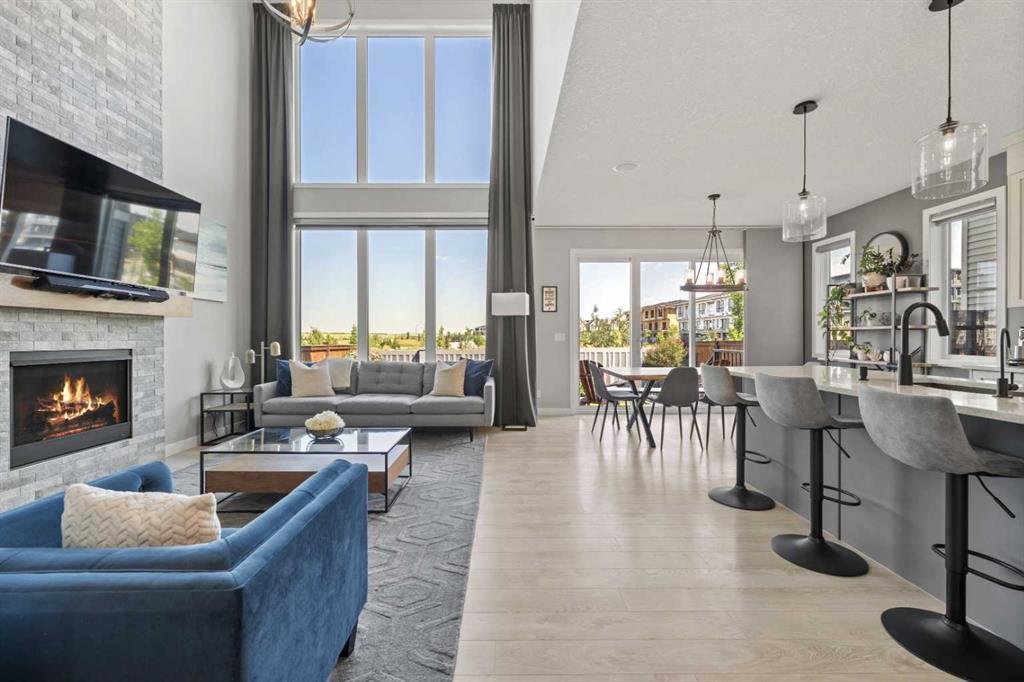 Welcome to an unparalleled living experience in the beautiful community of Carrington. This exquisite 4-bedroom, 3.5-bath detached home with just over 3100sqft of living space, built by Homes by Avi, epitomizes luxury and sophistication, where modern living meets timeless elegance. As you enter, be captivated by the awe inspiring 20’ Great Room, featuring floor-to-ceiling windows that bathe the space in natural light and a stunning floor-to-ceiling brick fireplace, creating a warm and inviting ambiance. The heart of the home, the exquisite kitchen, boasts an expansive island crowned with gleaming quartz countertops with eating bar, perfect for entertaining guests or casual dining. Stylish pendant lighting above the island adds a touch of contemporary flair, while the adjacent dining space ensures an ideal setting for social gatherings and culinary adventures. Equipped with top-of-the-line stainless steel appliances, including a French door refrigerator, built in oven and microwave, gas range, and range hood, the kitchen is a chef's dream. A walk-through pantry seamlessly connects to a mudroom, providing a direct path from the attached double garage to the kitchen, making grocery hauls effortless. Adjacent to the front foyer, an open office space offers a perfect sanctuary for productivity and creativity. Make your way to the second level, where luxury awaits. The private Master Bedroom, situated at the back end of the home, is a serene retreat with a generous window, inviting natural light. The opulent 5-piece ensuite features dual vanities, a full-length mirror, a glass-encased shower, and a deep soaker tub, all leading to an expansive walk-in closet with direct access to the laundry room, complete with a front-load washer and dryer. Secondary bedrooms are thoughtfully placed on opposite sides of the hallway, just steps away from a 4-piece bathroom. The bonus room, with its vaulted ceiling and south facing windows, offers a bright and airy space perfect for relaxation or entertainment. The fully developed basement presents a large recreation area, a fourth bedroom and a 4-piece bath, providing additional living space for guests or family members. Step outside to the professionally landscaped backyard, where a deck overlooks serene views of a tranquil water fountain, creating an idyllic outdoor oasis. Located in a family-friendly community, Carrington offers an exceptional lifestyle with scenic parks, lush green spaces, and tranquil ponds. This community offers residents with a serene retreat from the hustle and bustle of city life, with easy access to major highways, shopping centers, and dining destinations. Whether you're seeking a peaceful haven or a lively social scene, Carrington offers the best of both worlds, making it the ideal place to call home. Experience the pinnacle of luxurious living in this exceptional Carrington home. Your dream lifestyle awaits!