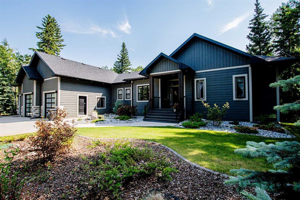 Fantastic family home on a private 1 acre treed lot in Taylor Estates! Offers convenience- located just minutes from the city, and tranquility- backing onto green space. This spacious bungalow has 10' ceilings, high quality laminate, tile and vinyl plank floors (no carpet), granite counters, in floor heating in the bathrooms, basement and garage, a 3 season sun room, and a walk up basement to the back yard. The kitchen has a huge central island, double wall ovens, both gas AND induction cooktops with pot filler tap, and a walk in pantry with microwave, stand up freezer, and coffee bar space! Open concept has the large dining area and cozy living room with gas fireplace positioned just off the kitchen. Step out into the 3 season sun room to enjoy a morning coffee, or a casual visit with friends. There is a 2pc bathroom, a full laundry room as well as 3 bedrooms and 2 more bathrooms on the main floor. The primary suite features a walk in closet, soaker tub, double sinks, and a large custom shower with dual rain shower heads, body sprays, shower wands. The large kids rooms each have walk in closets and a 5pc jack and jill bath in between. The basement is beautifully finished with another 2 bedroooms with walk in closets and one with ensuite, a spacious family room with fireplace, a wet bar with dishwasher and bar fridge, a games area, a gym/workout area with full length mirrors and special anti-fatigue gym floor, a full bathroom, another laundry room with space for home office. The oversize triple garage has in floor heating, a mudroom area with shoe and coat storage, sink and additional plumbing for a dog wash, pressure washer or extra sink, and man doors to front yard and back yard. This property is beautifully landscaped with tree/shrub/flower beds and has full irrigation (even in the ditch)!