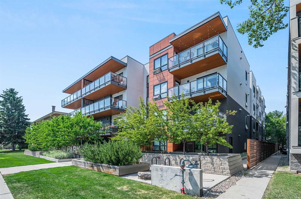 Welcome to this light & bright modern TOP FLOOR unit with a DEN, underground parking and an amazing central location directly across from Bridgeland Park! This is arguably one of Calgary's most sought out locations close to shopping, grocery stores, bars, restaurants, Bow River views and walking distance to downtown. This OPEN CONCEPT unit has a sunny and spacious living room that flows seamlessly into the kitchen that hosts stainless steel appliances, granite countertops, subway tile backsplash, contemporary cabinetry, an eating island that fits 4 and trendy light fixtures. The well laid out primary bedroom hosts a 4 piece ensuite bathroom with a deep soaker tub, granite vanity, independent shower and provides access to the in suite laundry. Adjacent is the Den that is perfect as an OFFICE and it has built-in storage cabinets that are included. The good sized balcony is perfect for relaxing after a long day or for BBQing with your BBQ gas line and being on the top floor you have added privacy as well. As a bonus- the heated underground parking stall is large enough to fit a truck, there is an EXERCISE room/gym and this unit comes with an assigned STORAGE LOCKER! This property is a hard to find top floor unit in amazing condition and it's move-in ready!