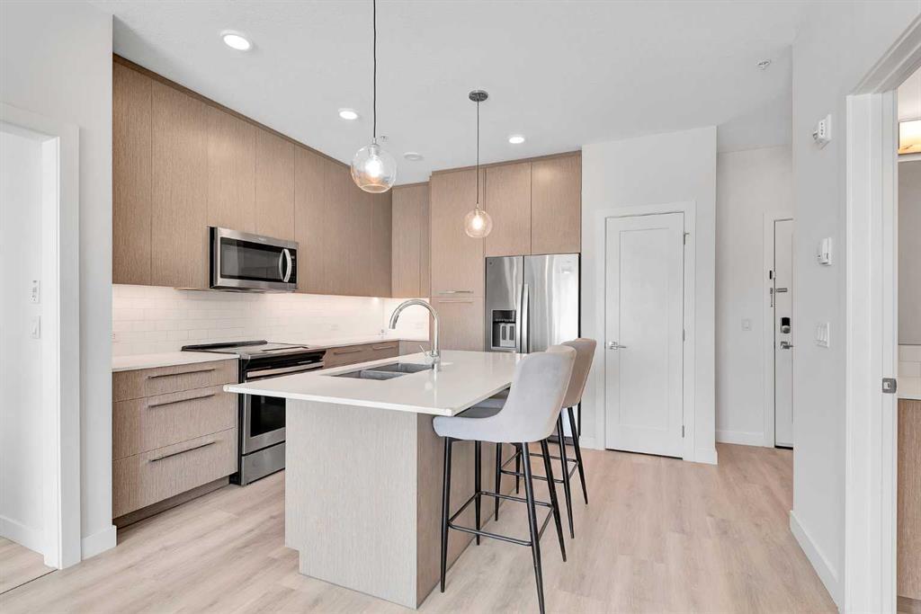 The beautiful condo comes with 2 Bedrooms, 2 bathrooms ,1 Living, in unit laundry, and including 1 underground parking spot and storage. The apartment unit is located at main floor with nice open view. The condo is built on 2021. In the unit, you can enjoy the big living room and great spacy kitchen area. Balcony is close the living room. From the balcony, you can have good time of great view. In the building, you can enjoy luxurious lifestyle with an extensive array of amenities. There is a fully equipped fitness center with yoga and spin studios to the tranquil library, owners' lounge, kids' room, theatre, community garden, inviting picnic areas, and even a pampering pet spa. You will be easy to access Stoney Trail, Deerfoot Trail and Airport. There are bus stops and business retail located at the community. It’s nice opportunity to have this as investment property, or enjoy it as your new home. You must see this.