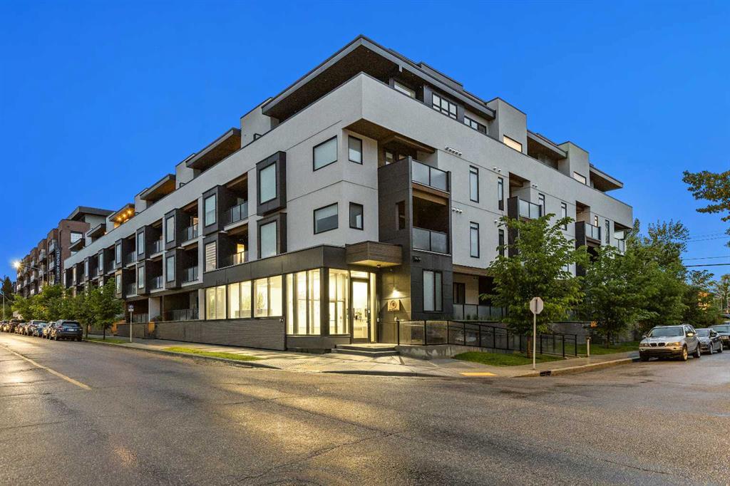 WELCOME to this AIR-CONDITIONED, IMMACULATE 1015 Sq Ft HOME that has 2 TITLED PARKING STALLS, an ASSIGNED STORAGE LOCKER, + Common area BICYCLE STORAGE in the UNDERGROUND HEATED GARAGE, 2 Bedrooms, 1 Den/Office, 3 Bathrooms (incl/1 EN-SUITE), a 15’6” X 9’9” BALCONY on the TOP FLOOR that is QUIET, + SO MUCH PRIVACY in THE COCO Building located in SOUTH CALGARY!!! This building has SOPHISTICATED FEATURES that have MODERN LIFESTYLE in mind. There is a CURB Appeal w/LOW MAINTENANCE Landscaping, + TREES. Upon entering the unit, is the Foyer. You will see the 10’ CEILINGS, UPGRADED LUXURY VINYL PLANK Flooring, + NEUTRAL Colour Tones. There is a 2 pc Bathroom, + a DEN/OFFICE which is GREAT for working at HOME. This SLEEK KITCHEN has it all w/WHITE FLOOR-to-CEILING CABINETRY (EXTRA STORAGE in the cupboards/pantry area w/Pocket Door), SS APPLIANCES incl/GAS RANGE, + BUILT-IN Dishwasher, + Microwave, TILED HERRINGBONE Backsplash, QUARTZ Countertops, + an ISLAND w/BREAKFAST BAR for the on-the-go during those busy days. The Living/Dining Room is PERFECT for those DINNERS w/FAMILY, + FRIENDS coming over. It has a LARGE Window, + a door to the Balcony giving it a SPACIOUS FEEL from the NATURAL LIGHT coming in. The balcony has room for those BBQs incl/Gas line to make it easier for ENTERTAINING. There is the Laundry Room w/Stacked Washer, + Dryer. The PRIMARY BEDROOM has a WALK-IN CLOSET for clothing/storage, a 4 pc EN-SUITE incl/Dual Sinks, White Cabinetry, + a Standing Glass Shower. A 2nd GOOD-SIZED Bedroom has a WALK-IN Closet, + access to the 4 pc Bathroom incl/Soaker Tub w/Glass. UPGRADES incl/Garburator, Extra LARGE storage locker #32, Walk-In closet shelving added to 2nd Bedroom closet, Floating Shelf on mirrors in 3 bathrooms, Glass shower door for soaker tub, Manual blinds on all windows, dimmer switches/Smart tech control on main lights, + flooring upgrade (2021) see in Supplements portion of listing. The CoCo building (2019) has AMAZING Amenities w/Outdoor Courtyard, Guest Suites, a Yoga Room, a Dog Wash Station, a bike workshop, + VISITOR Parking. It has Triple-Paned Windows, double-drywalled sheet board to exterior walls, + separate air handling units within each unit for heat, + A/C (No noisy heat pump on the patios). There are 130 Trendy Shops - Shopping, Coffee Shops, Retail Stores, Restaurants, Fitness Facilities, Grocery Stores, + More. Marda Loop has a Community Centre less than a block away w/EVENTS such as SPOOK THE LOOP, SPIRIT OF THE LOOP, an OUTDOOR POOL, TENNIS/PICKLEBALL COURTS, BEACH VOLLEYVALL (in summer), Community GARDENS, RINK Schedule, + Hall Rental. It is Inner City, close to Transit, + close to downtown. Come check out this BEAUTIFUL HOME TODAY!!!