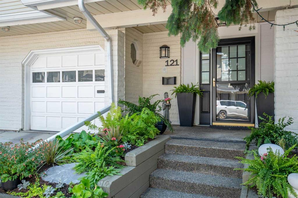 Welcome to Landmark Estates III unit 121! Homes in this sought after complex don’t become available very often! This special community offers 13 acres of lush gardens, mature trees and three large ponds. It was designed as a retreat within the city and offers a park like setting within walking distance to the Children’s Hospital, University District and Market Mall. This 2100plus sq ft townhome has been loving updated and cared for over the years. The foyer offers a generous space to welcome your guests with a double closet to accommodate outdoor gear. Level 1 also provides access to the tandem two car garage and laundry/utility room with a wall of built-in storage. The main floor is spectacular! A wood burning fireplace is a highlight and the wall of windows and patio doors to your private deck with views of the gardens and pond area are amazing. The living room and dining room are both large enough to entertain as well as cozy and inviting to relax solo or with a more intimate group. Hardwood floors were added on both the main and second floor and the principal areas have been freshly painted. The kitchen is bright and cheery with lots of storage and counter space and features a charming eat-in area. The fridge and dishwasher were new in 2020 and a water purifier and water softener are included. The second floor offers a total of two bedrooms and a loft space convenient for a home office or television area. Bedroom two is spacious with views of the pond and is conveniently located beside the 4-piece bathroom. The primary suite is stunning, with double doors to the Juliet balcony as well as your ensuite with a soaker tub, double sinks and walk-in closet. This is a tastefully decorated timeless home in an unbeatable location minutes to University of Calgary, schools, LRT, Foothills Medical Centre, Bow River an easy commute to downtown. Don’t miss the opportunity to have a lock and go lifestyle in popular Varsity in a home you will love living in.