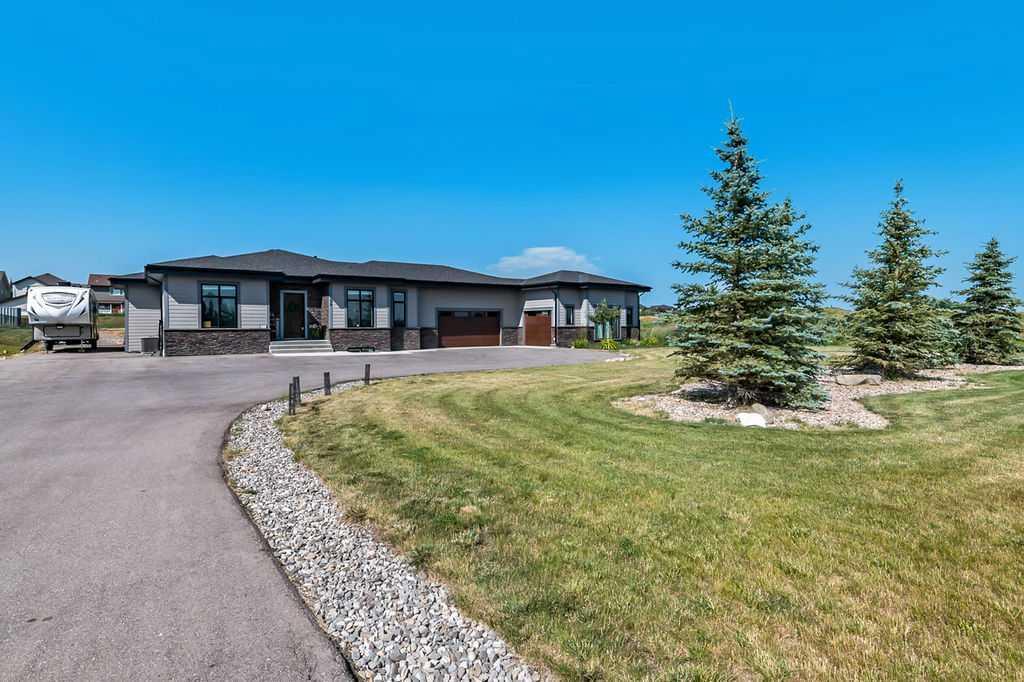 Welcome to 20 Green Haven Drive, this stunning 3,900+ square foot estate, gracefully nestled on a sprawling 1.6-acre lot in the one-of-a kind community of Green Haven Estates. This exquisite home blends elegance with functionality, offering a lifestyle of comfort and luxury. As you enter, you're met by the expansive main floor with soaring 10' ceilings and a seamless flow of rich hardwood and sleek ceramic tile flooring. As you walk down your expansive hallways, you're greeted with the living room and its beautiful tray ceilings, complemented by the floor to ceiling gas stone fireplace making it as cozy as it is chic. The heart of the home is the gourmet kitchen, a culinary masterpiece featuring lacquered full-height cabinets, a grand granite island, and top-of-the-line Monogram appliances. Blanco ceramic sinks throughout, soft-close drawers, and a convenient walkthrough butler’s pantry makes this space built for chefs and families alike. The master suite, conveniently located adjacent to the kitchen, is a sanctuary of relaxation. The luxurious ensuite boasts an upgraded tiled shower, double vanity, a deep soaker tub, electrically heated floors, and a custom built walk-in closet. The main floor also includes another spacious bedroom, a full 4-piece bathroom, a dedicated office space, a well-appointed laundry room, and a mudroom equipped with custom lockers for added convenience. Descending to the basement, you'll discover in-floor heating and a massive games/family room perfect for gatherings and relaxation. The enormous wet bar, featuring a grand granite island and ample cabinetry, sets the stage for future wine room expansion. Enjoy movie nights in your private theatre room, while two additional bedrooms with custom MDF closet organizers and another full bathroom ensure ample space for family and guests. The property’s 1,200 sqft garage is a true gem, offering 13' ceilings; perfect for any size of lift, in-floor heating, and plenty of workshop space for the hobbyist or car enthusiast. Step outside to your private backyard oasis, complete with a fully covered deck featuring durable Trex boards, a large cement patio, BBQ gas line and a cozy fire pit area. The entire space is fully fenced, providing a secure and serene environment for outdoor enjoyment. Being situated on 1.6 Acres makes this property perfect for adding an additional shop or secondary building in your backyard. Other upgrades to this home include an ICF wall foundation to the main floor roof, Air Conditioning, RV Parking Pad with plug-in, Nest Thermostat and a water softener. This exceptional residence combines refined luxury with practical amenities, making it an ideal choice for those seeking a serene retreat close to Okotoks. Close to schools, dog parks, walking paths and the iconic Dawgs Stadium! Don’t miss the opportunity to make this extraordinary property your new home - Call for your private showing today