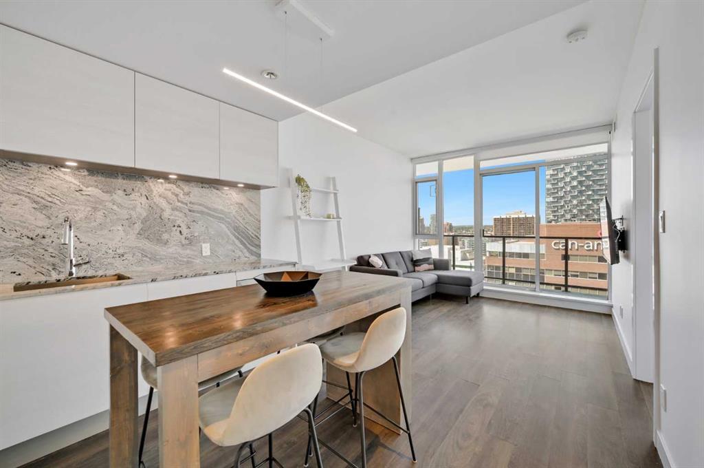 ***OPEN HOUSE CANCELLED*** Welcome home to one of Calgary’s most coveted high-rise complexes at PARK POINT. Well-known for its HIGH-END Minimalistic design, you’ll notice it everywhere in the building, but most importantly in your home. From the contemporary fixtures, GAS COOKTOP and BUILT-IN OVEN, panelled “hidden” fridge, to the luxurious GRANITE COUNTERS, FULL HEIGHT CABINETRY with stylish undermount LED lighting. The natural light coming into this home is unmatched, with the west exposures and FLOOR TO CEILING WINDOWS. If you are someone who enjoys STUNNING VIEWS, imagine sitting on your 19th floor balcony with a cup of tea, viewing the downtown skyline, or go up to the ROOFTOP PATIO for an even more panoramic experience! Whether out for a stroll with your furry friend or with your own contemplative thoughts, you’re just steps away from natural greenery either on the 3rd floor Zen Garden or right across to beautiful CENTRAL MEMORIAL PARK. A true INNER CITY LIFESTYLE awaits you in this HIGH WALK SCORE area close to almost everything you will want conveniently at your fingertips. Walk to a myriad of shops, entertainment, and restaurants throughout the Beltline, including 17th Ave SW. The prime location is complete with a SAFEWAY only 2 mins away. Commuting in the summer is always a breeze, but what about in the winter?! If you work Downtown, you’re a quick walk to the extensive PLUS 15 system, or if you work further, be spoiled by your TITLED UNDERGROUND HEATED PARKING and easy access to 14 St, Macleod Tr, Deerfoot Tr and Centre St. Park Point also boasts state of the art amenities including: GUESTS SUITES, fitness centre (w/ yoga room), pet and car wash, OWNER’S LOUNGE with full kitchen, outdoor dining space w/ BBQ, a friendly CONCIERGE (8am – 10pm), and overnight security. Don’t miss this opportunity to be the new owner of this lifestyle that you deserve!