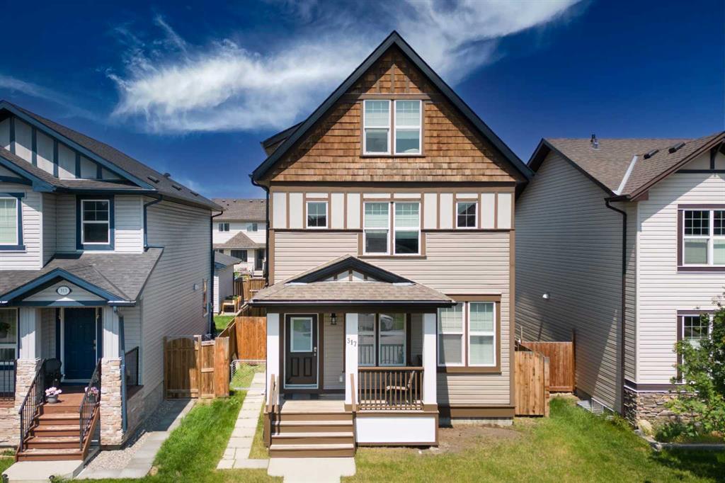 Welcome to this beautifully maintained home in Skyview Ranch! This 5-bedroom, 3.5-bathroom family home boasts an impressive layout, a high ceiling, a stunning kitchen with granite countertops, stainless steel appliances, and a center island with extra storage. The top floor features a versatile loft with a fourth bedroom/balcony that can serve as a bonus room, private office, or a bedroom for guests Throughout the house, you’ll find tasteful decor, accentuated by gorgeous light fixtures, Hunter Douglas blackout blinds, tile floors, and chestnut cabinetry and speakers even on the deck. On the second floor, you can find the primary bedroom with its private ensuite and walk-in closet, along with two more spacious bedrooms and another full bath. The third level offers a multi-purpose loft that you can use creatively. From the loft, one can see Calgary Tower & Downtown and the balcony gives a view of a beautiful sunset. The fully finished basement has a side entrance, a bedroom, a bathroom, and a living room. There’s even space to build a future kitchen. Step outside to the impressive backyard, complete with a large full-sized deck and beautifully landscaped front and back yards. The double detached garage, featuring, high walls, and 240v subpanels with extra outlets, is the largest on the block. Additional features include an on-demand H2O tank, high-efficiency furnace, built-in speakers, and Kinetico Water Softener + Kinetico Filtration System. The location is incredibly convenient, with transit, schools, parks, playgrounds, a gas station, shopping, and major routes like Metis Trail, Country Hills, and Stoney Trail just minutes away. Don’t miss out—this home won’t last long!