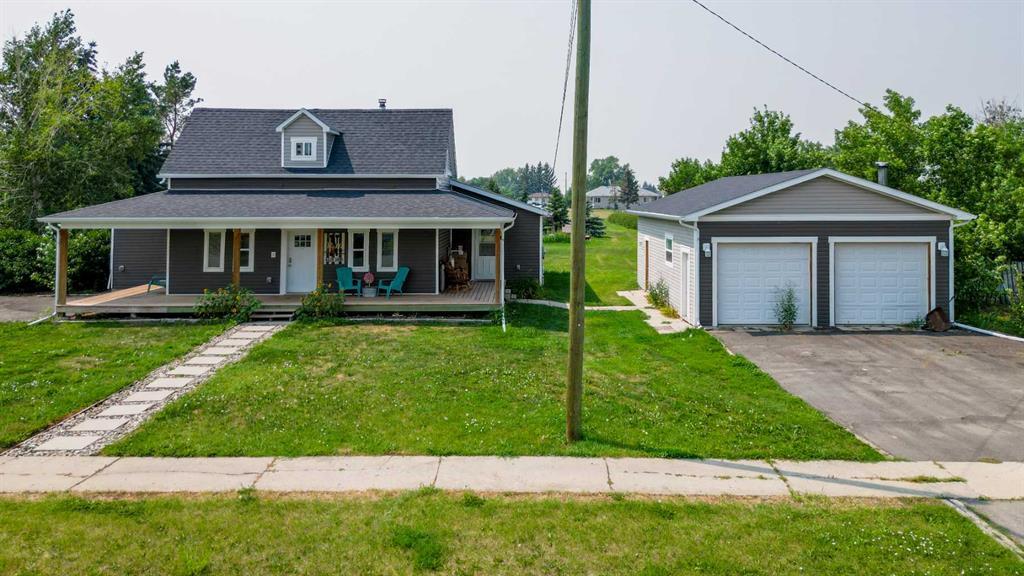 This remarkable home sits on almost an ACRE of land, has a double detached garage that includes a heated office area, in-ground trampolines, fruit trees and bushes galore, an absolutely stunning chef’s kitchen with more cabinetry space than you have ever seen, new carpet, a wood burning fireplace, ample storage space in the basement, and a a wrap around front porch. What more could you possibly be looking for?! Located just 20 minutes from Lethbridge, the town of Raymond brings you this fantastic property!! The additions to the home were done in 2016 and all new electrical, plumbing, and even an upgraded sewer line done at that time too!! Stepping inside the home you will appreciate the open concept main level living, the shear amount of large windows that allow the natural light to pour in, the newly renovated main floor bathroom, the conveniently laid out, main floor laundry, and surely the largest island you have ever seen!! The kitchen is any cook’s dream: double wall ovens, a gas range with a heavy duty hood fan, large stainless steel fridge, pantry area, and tons of countertop space! The sink overlooks your backyard where your children and pets can run around and play! Upstairs you will find three bedrooms (one of which could be converted into a second bathroom should you choose). This home is full of character, modern updates, and tasteful finishes and is essentially your own mini homestead acreage in town!! Don’t delay, book your showing today!