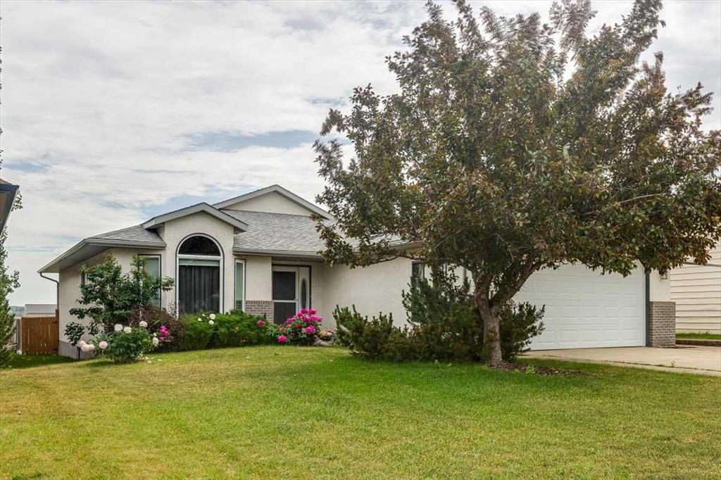 Welcome to this spacious bungalow situated in an established community within the town of Rimbey. The home backs onto and faces greenspace, no neighbours behind, or in front with back alley access. Entering the home you stand in a large foyer with the door to a walk-thru entryway closet with double french doors to the right, to the left is the entrance to the primary bedroom with brand new windows, blinds, super sized walk-in closet with a window. Off the master is the very spacious 4-piece ensuite with custom built-ins and new toilet with a cheater door to the hallway. The hallway leading into the living room has built-in cabinets which leads into the living room which is very large with soaring vaulted ceilings and massive brand new windows, blinds and curtains with views to amazing to the open greenspace and manicured back yard. Off of the living room is the generous dining room and the updated kitchen with newer counter-tops, stylish backsplash and stainless steel appliance. Just off the kitchen is the laundry room, a very good sized mudroom with a door to the double attached in-floor heated & insulated garage as well as a door to the side yard where you will find the hot tub. The downstairs is spacious featureing 4 bedrooms, a 4-pc bathroom with updated countertop, backsplash and toilet, storage room, workroom as well as a cold storage room that can be used for storing wine, canned foods. With over 3000 square feet of finished living space and a park across the street, this home offers plenty of room for the growing family in family friendly town. Rimbey is about 1.5 hours to the Edmonton Airport, 45 minutes to Red Deer with a Costco, and a short distance to Gull Lake and Sylvan Lake. Great location surrounded by recreation, shopping and schools.